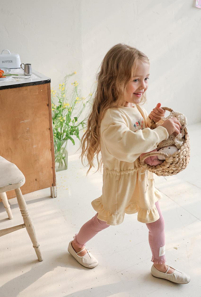 裾のフリルがふんわりと広がり、動くたびに軽やかな印象に。