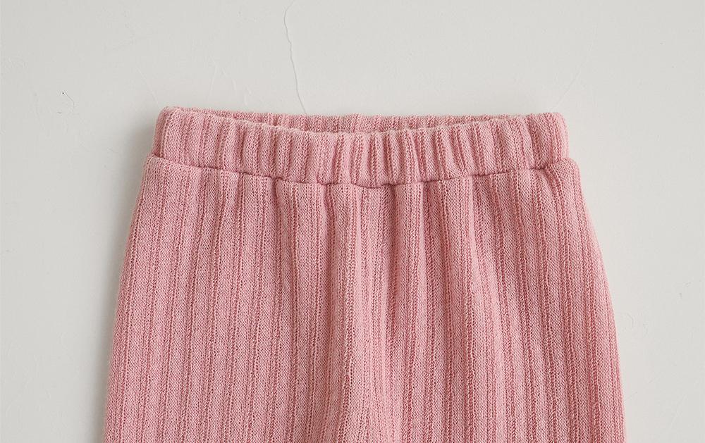 やわらかな風合いのニット素材で仕立てており、伸縮性があるので動きやすく快適なはき心地。