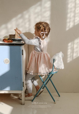 同じ素材で仕立てたトップスも展開しており、セットアップでコーディネートすれば統一感のあるキュートなスタイルが完成します。