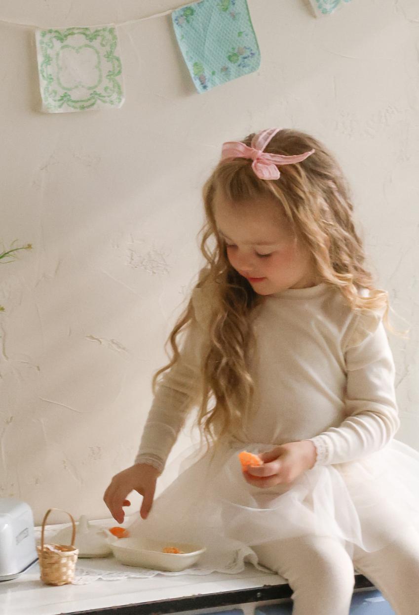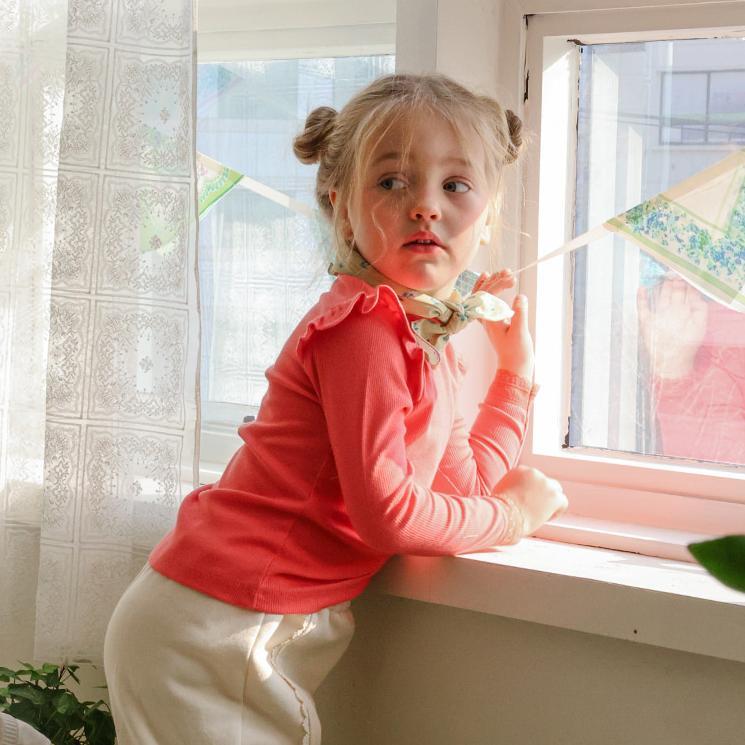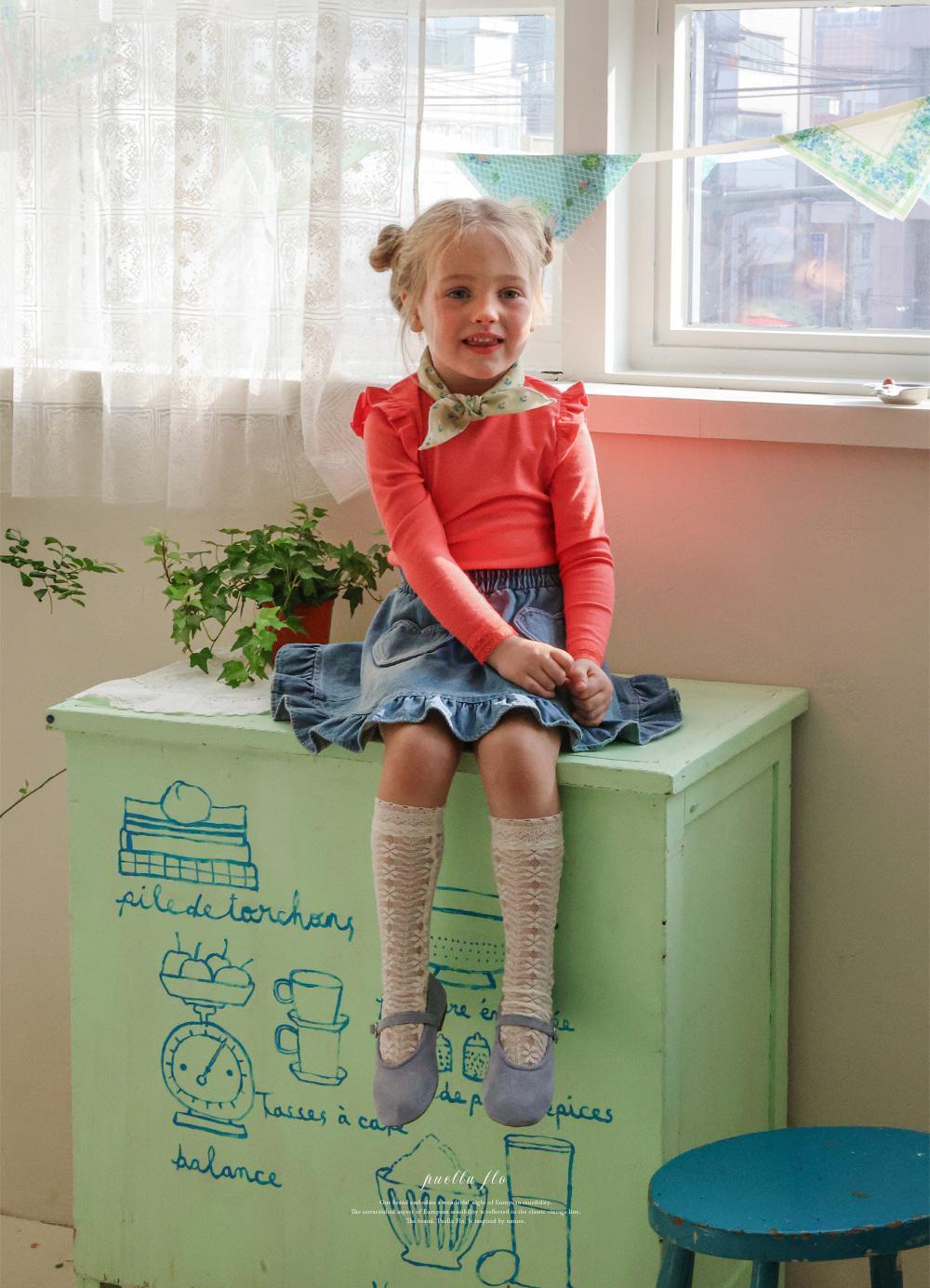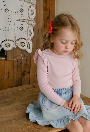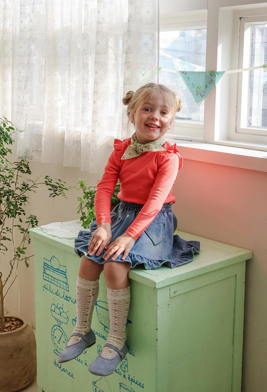 同じ素材で仕立てたトップスも展開しており、セットアップでコーディネートすれば統一感のあるキュートなスタイルが完成します。
