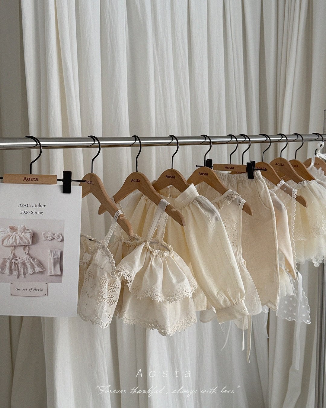肩紐リボンやフリルディテールなど、細かなデザインにもこだわった一枚。