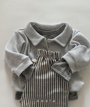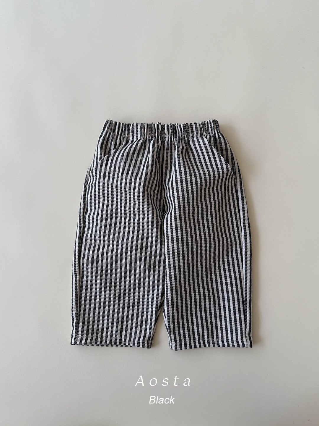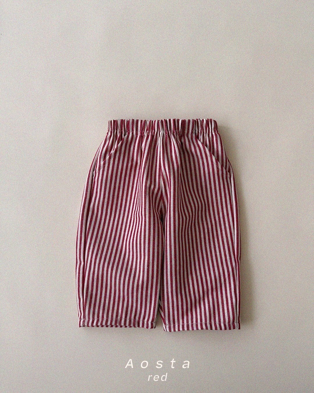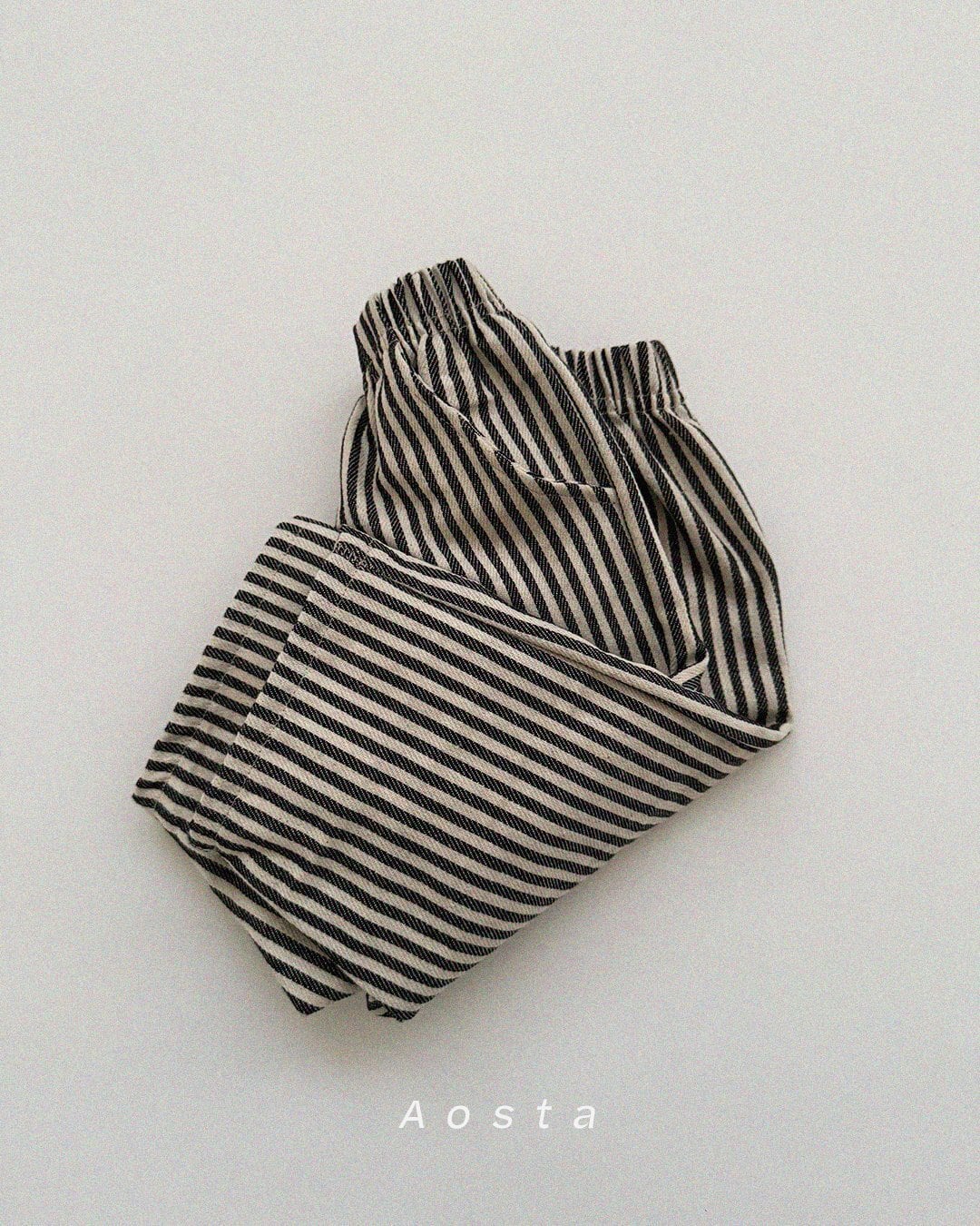 丸っこいストレートシルエットにストライプ柄のコットンパンツです。