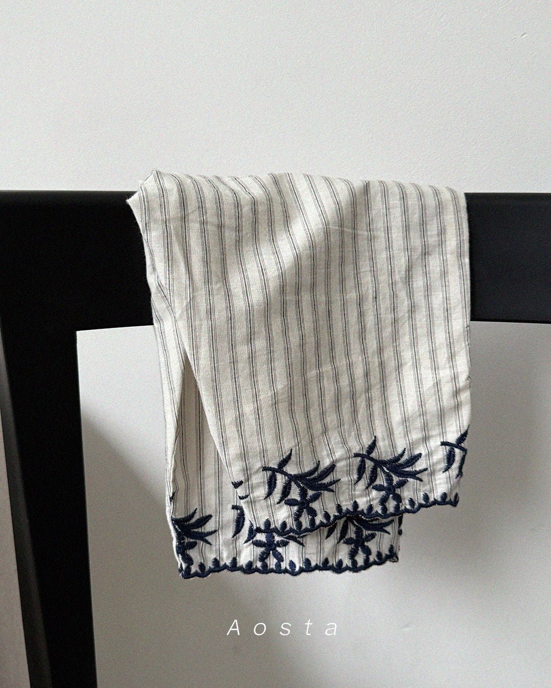 ストライプ柄とフラワー刺繍素材のデザインがガーリな雰囲気を引き立てます。