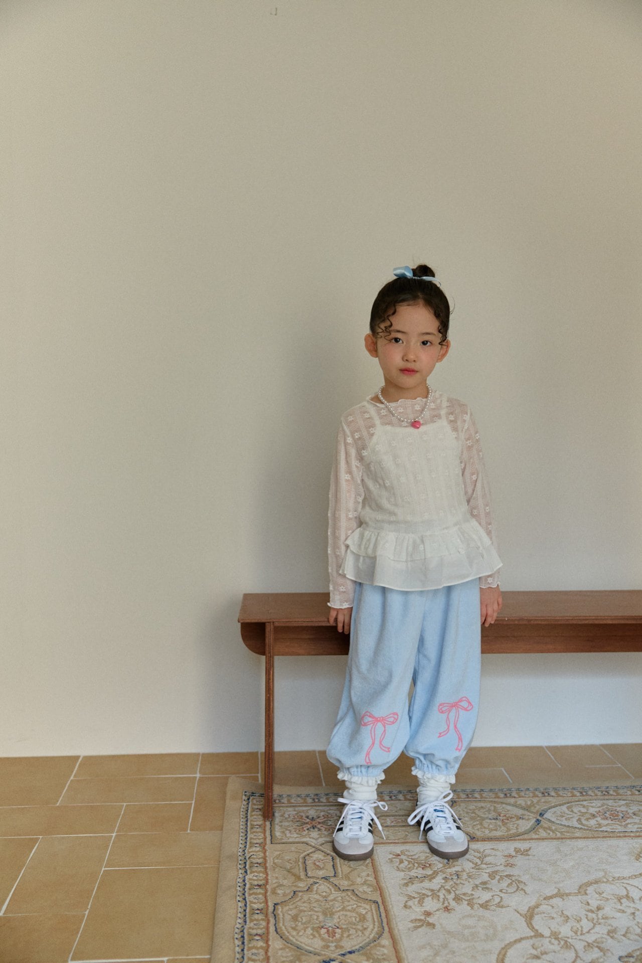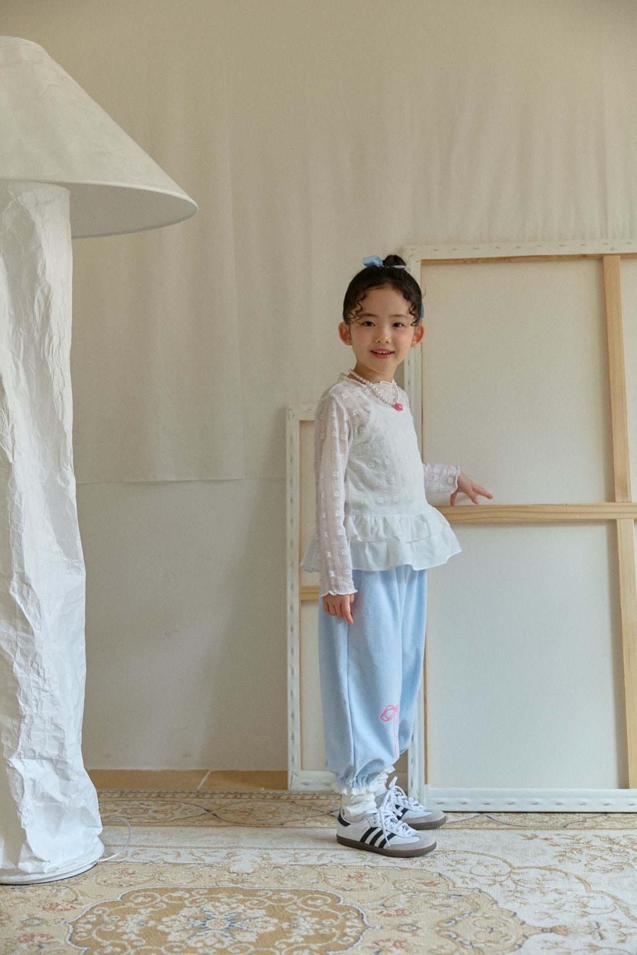 裾にはフリルデザインを施し動くたびにさりげない華やかさを演出します。