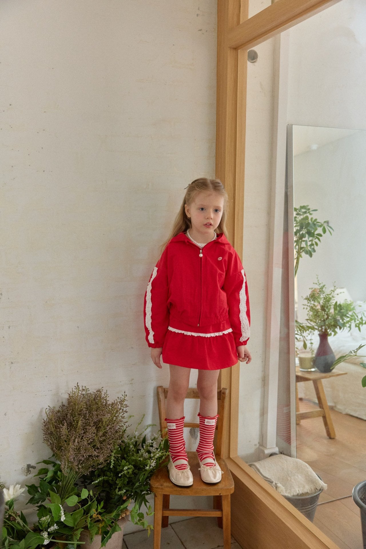 スカート部分にはレース飾りをあしらいカジュアルな中にもガーリーな雰囲気を添えました。