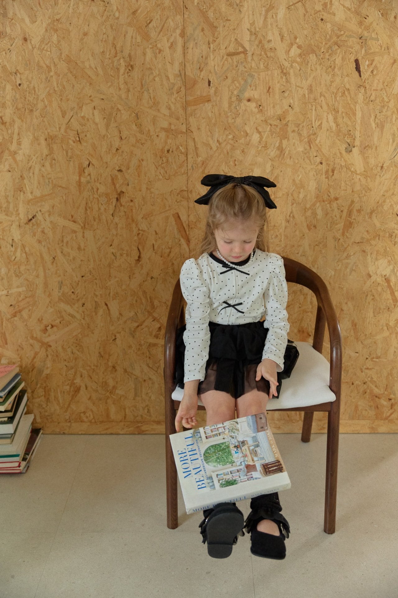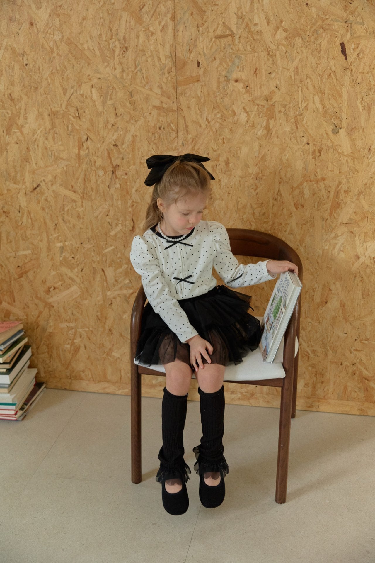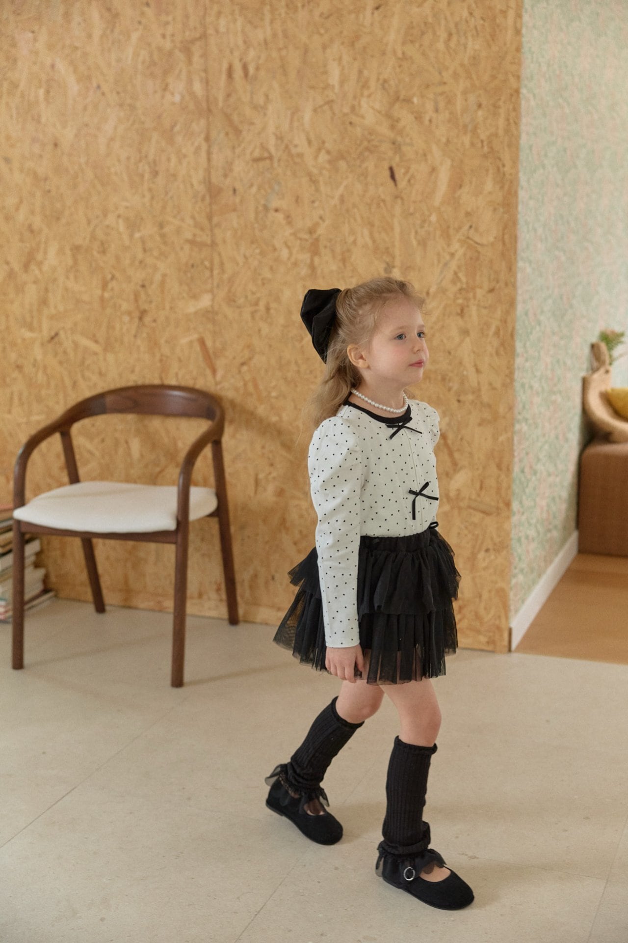 胸元にはリボンの飾りをあしらいガーリーなアクセントをプラスしました。