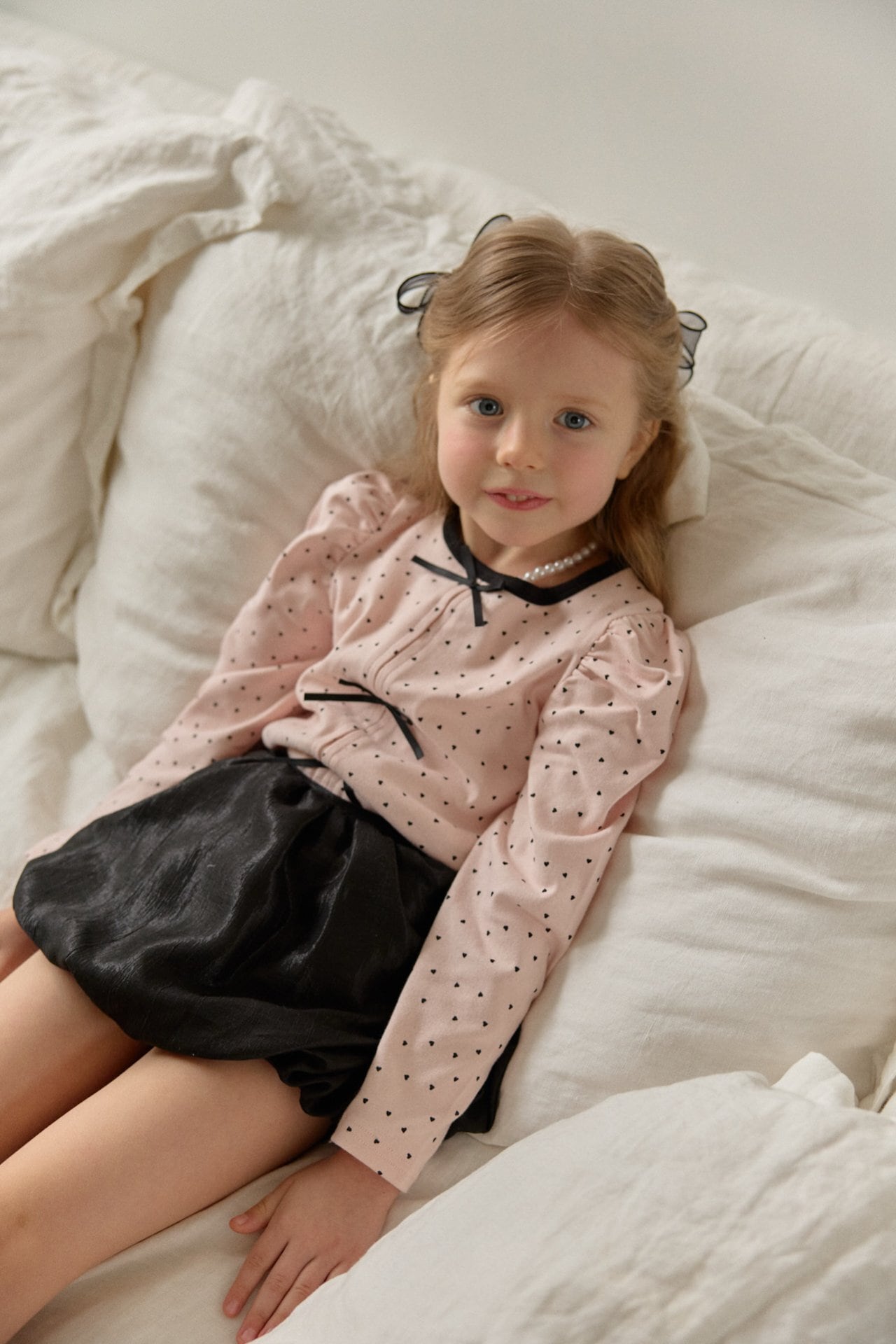 全体に散りばめた小さなハート柄がさりげない可愛らしさを演出します。