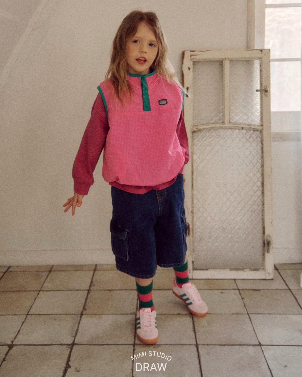 カットソーやスウェットの上に重ねるだけでスタイルが決まり、男の子にも女の子にも幅広く楽しんでいただける一着です。