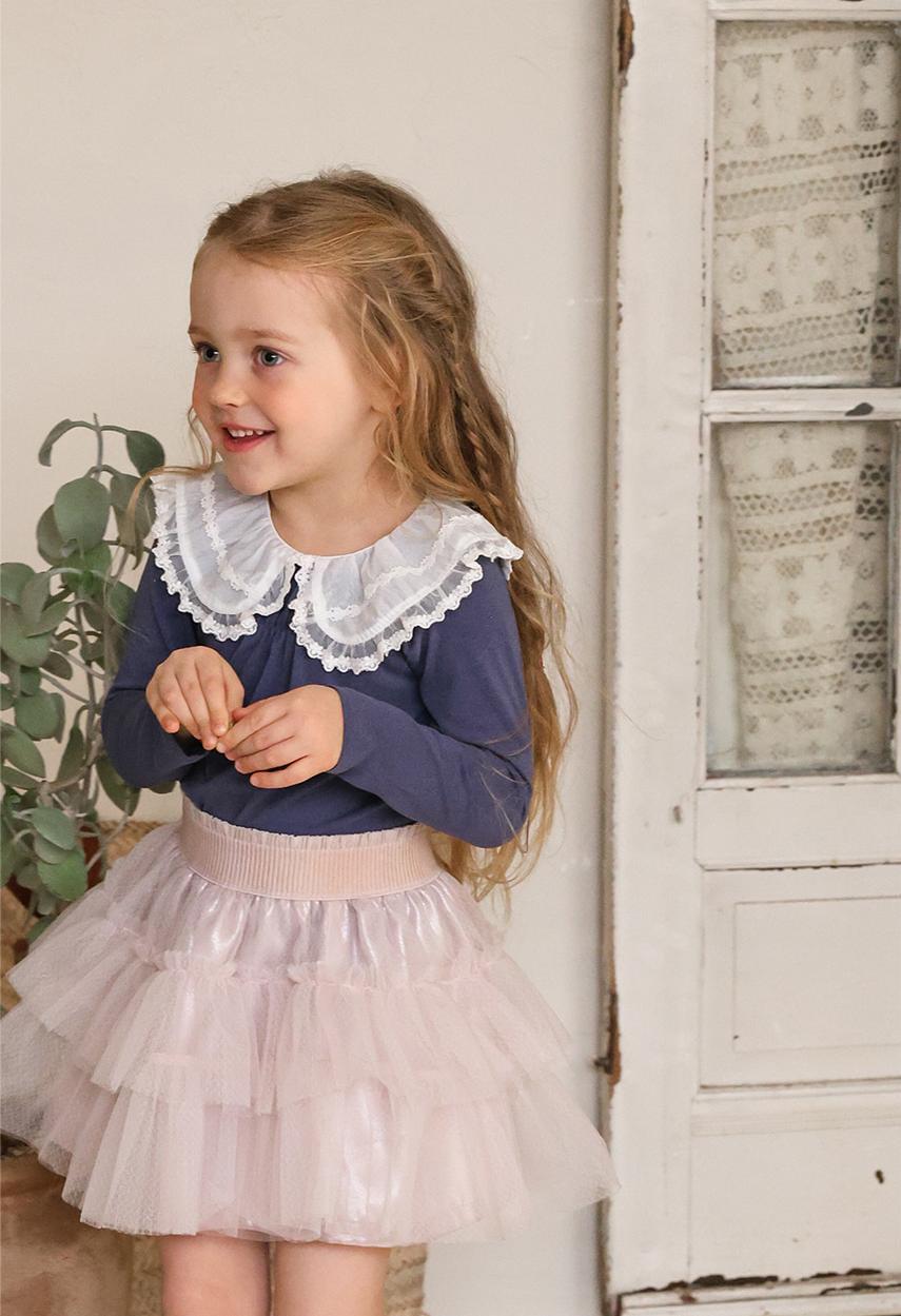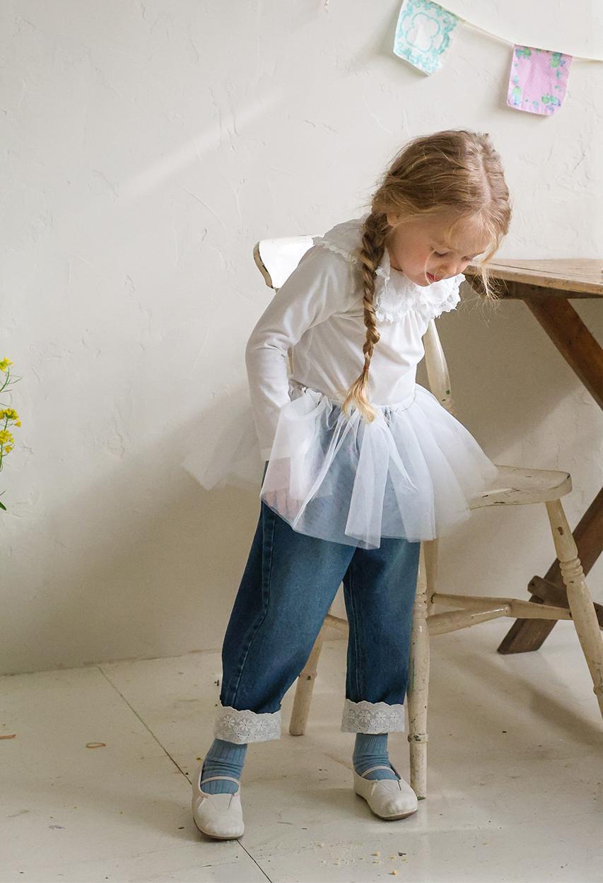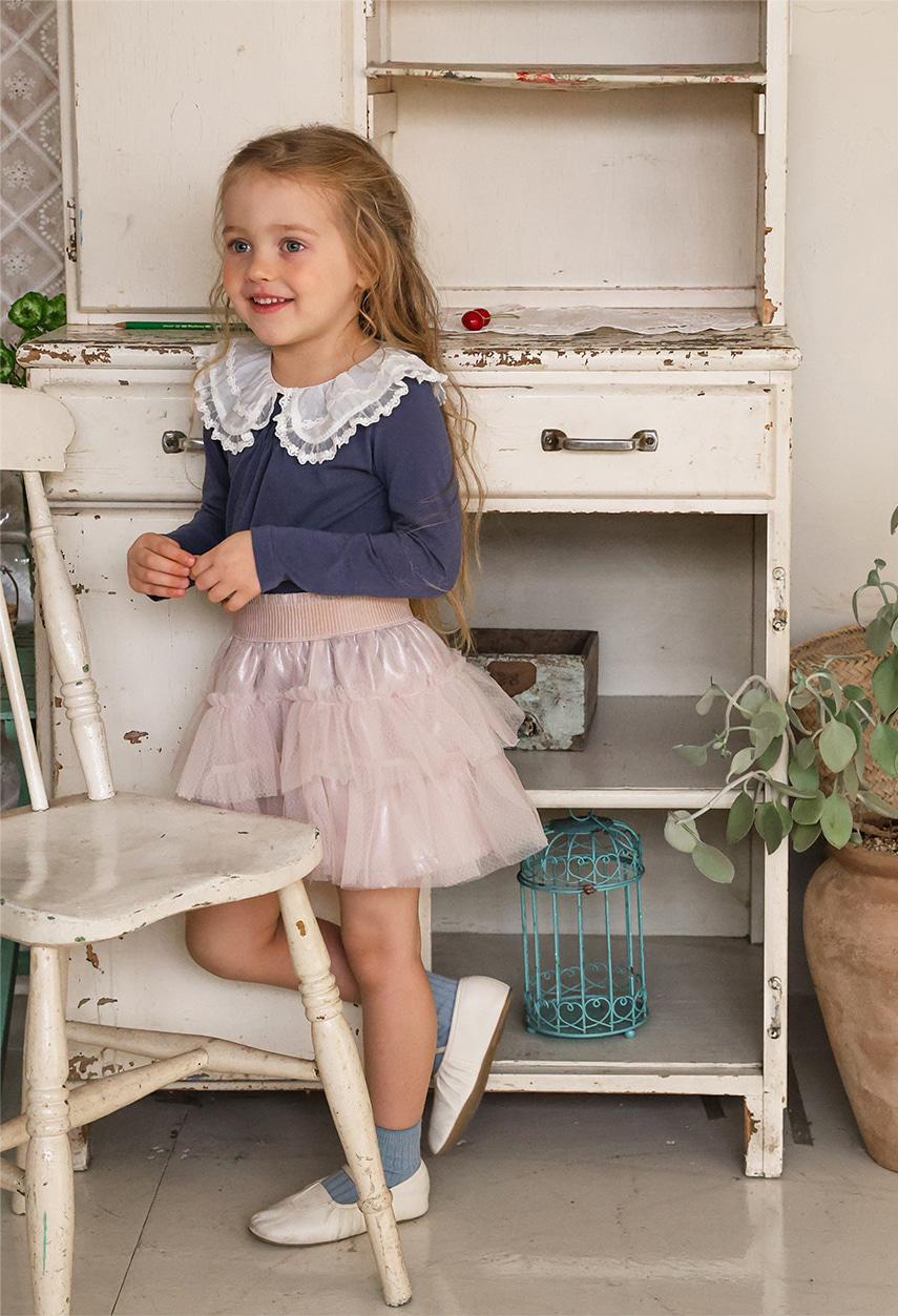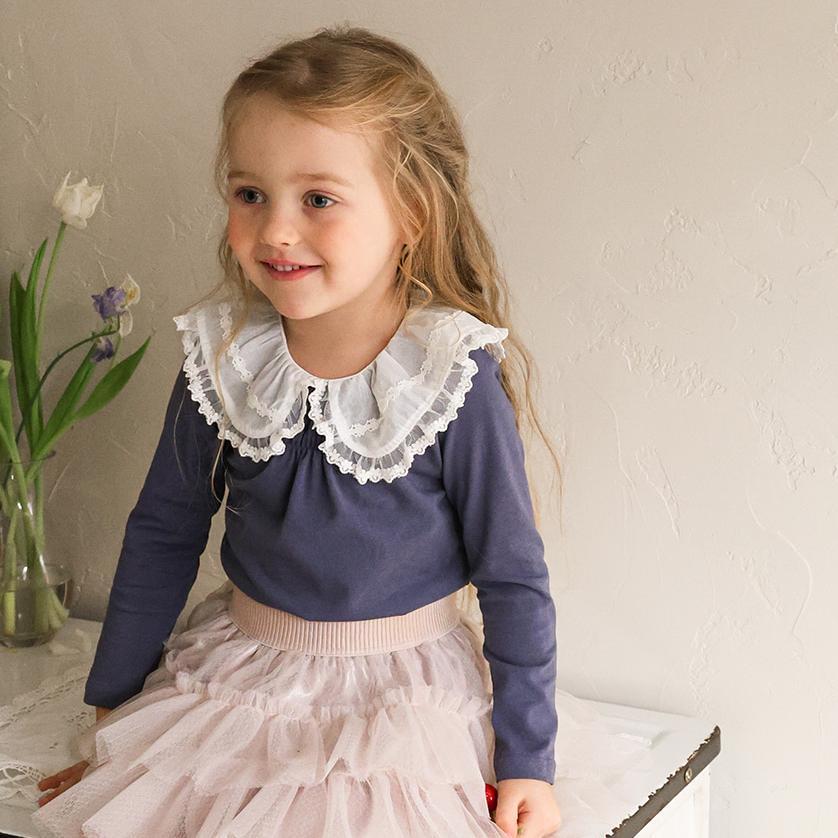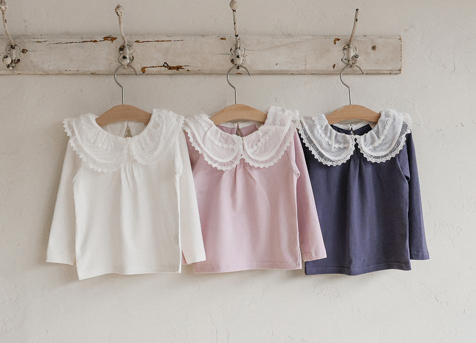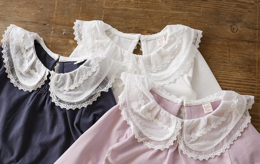 レースのラウンド襟が上品なアクセントになりガーリーで可憐な雰囲気を演出します。