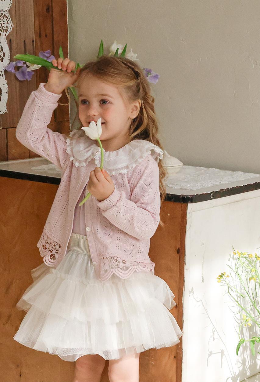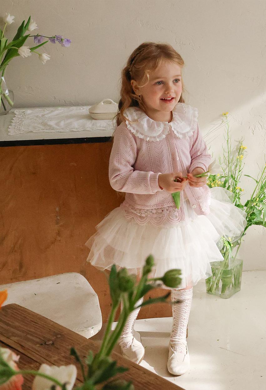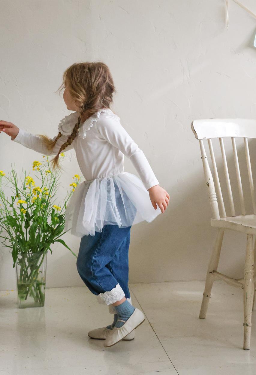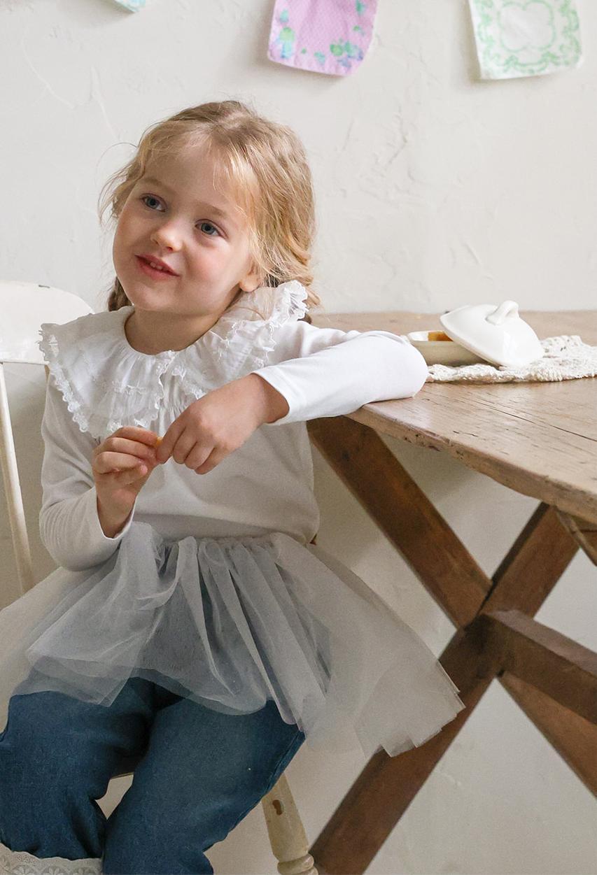 レースのラウンド襟が上品なアクセントになりガーリーで可憐な雰囲気を演出します。