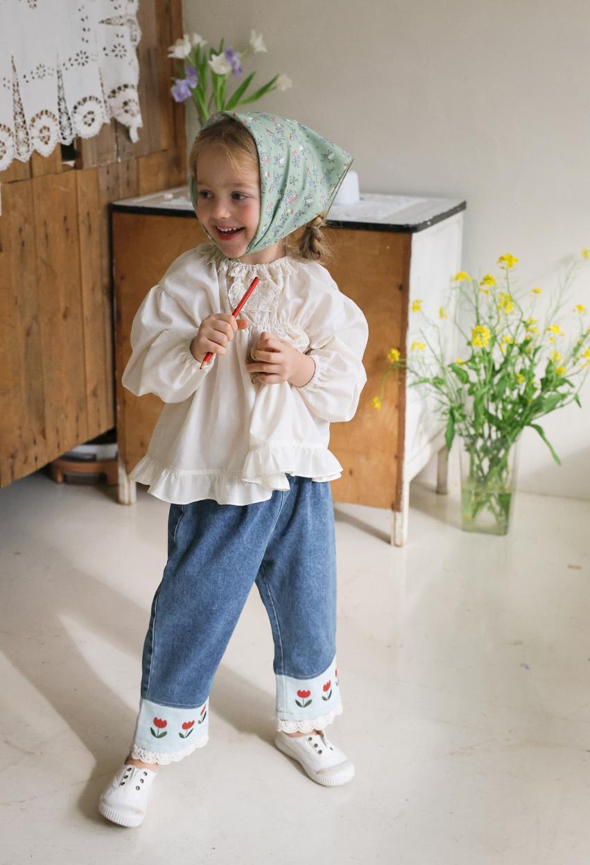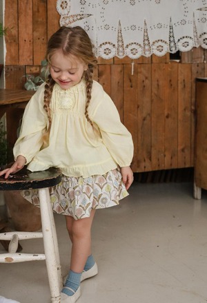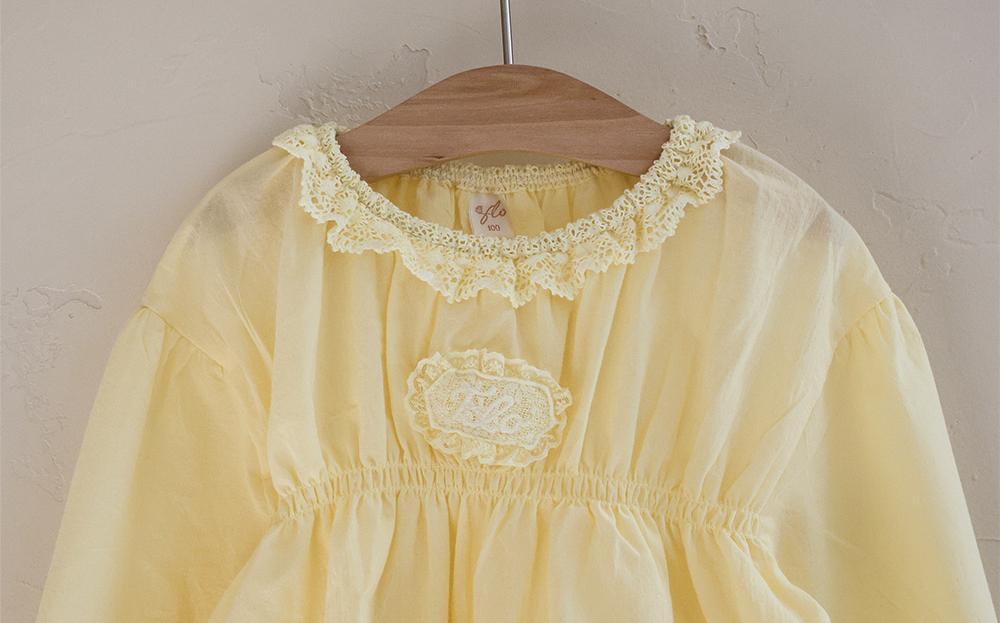 コットン素材をベースにシャーリングデザインとスモックレースが全体の雰囲気を格上げしてくれます。