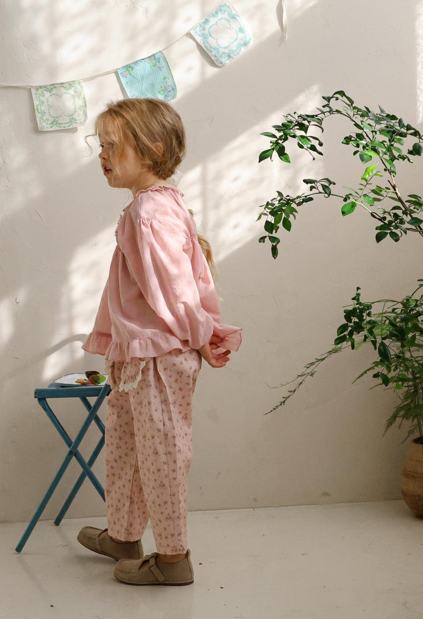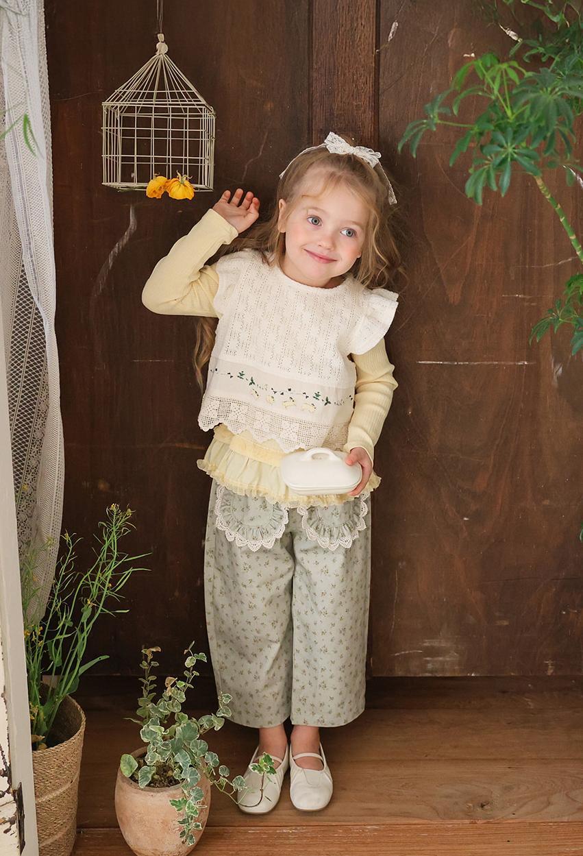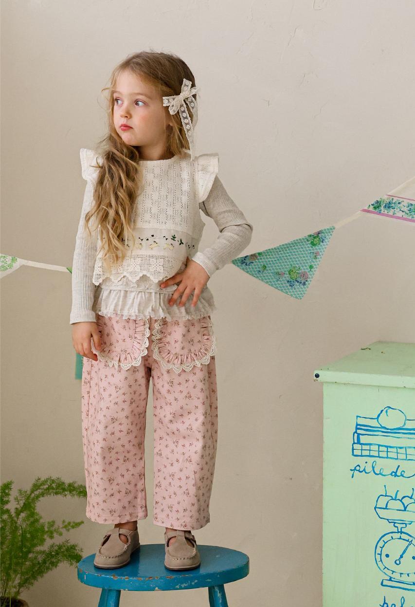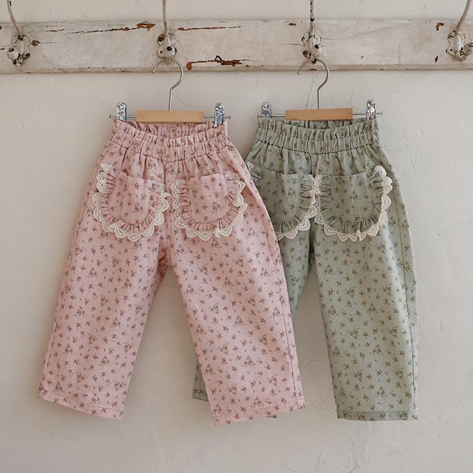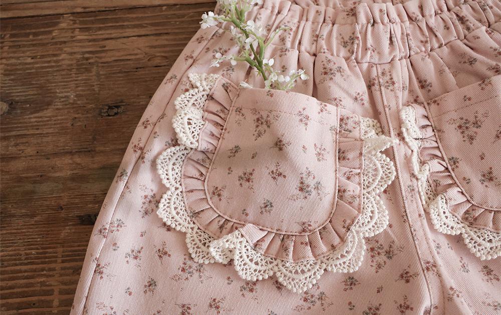 花柄に裾のレースのポケットがガーリーな雰囲気のパンツです。