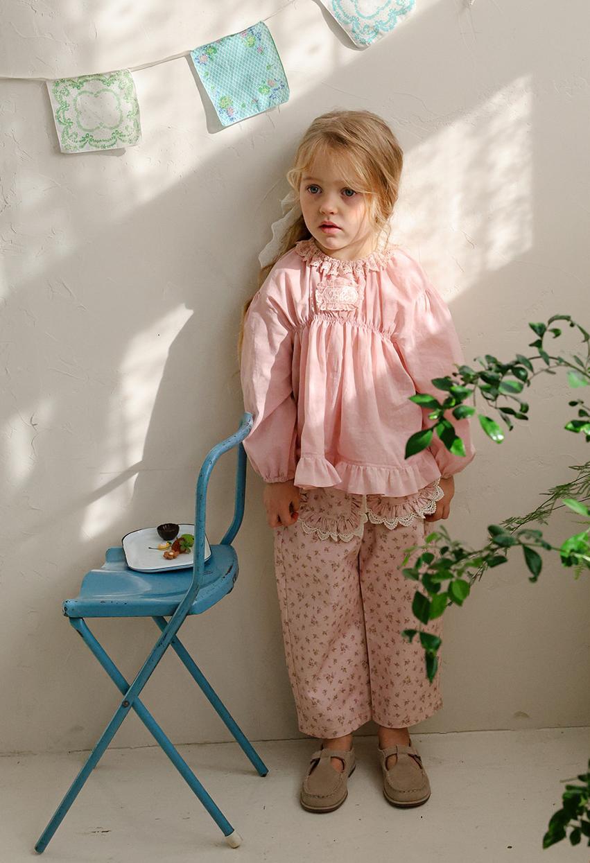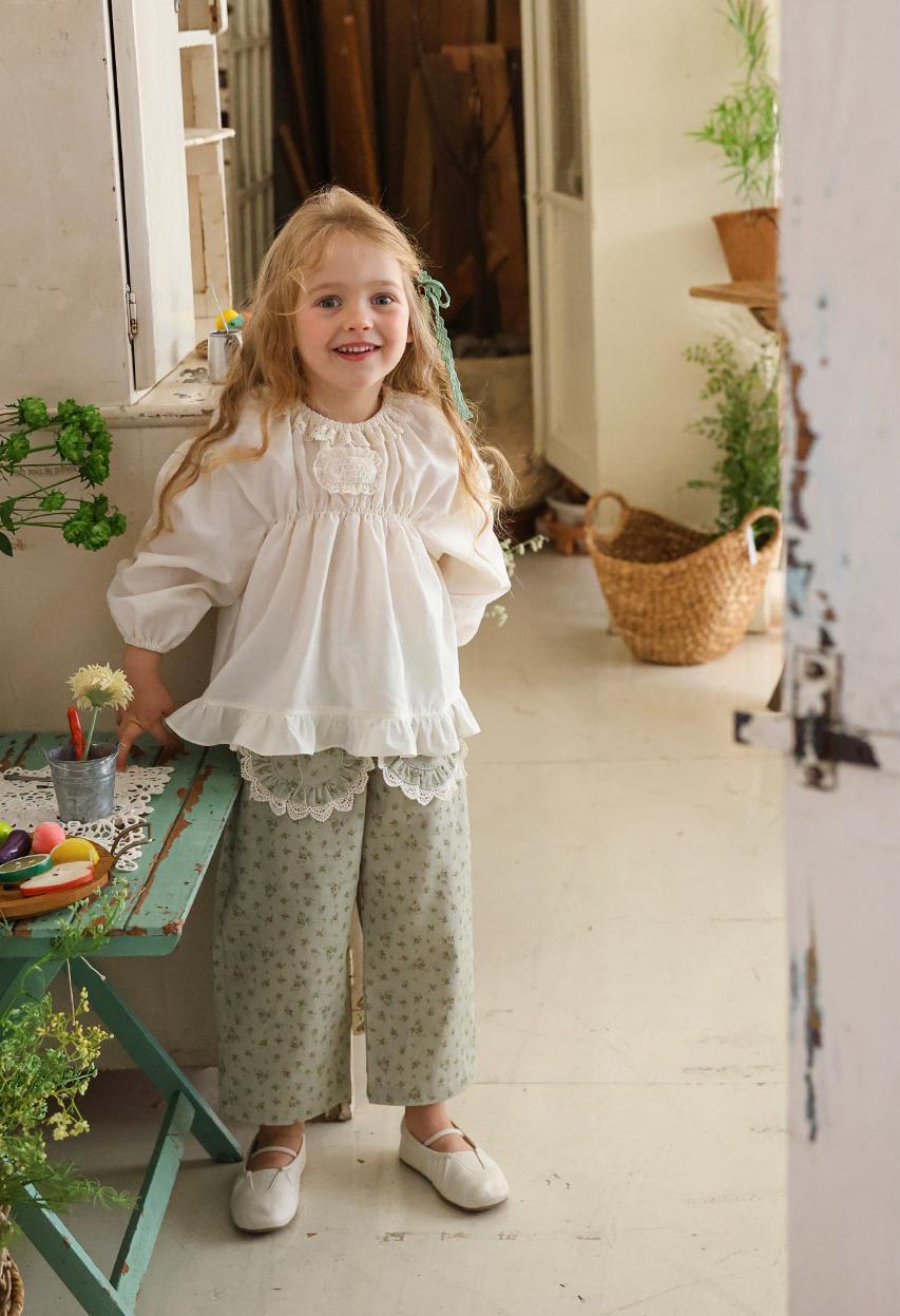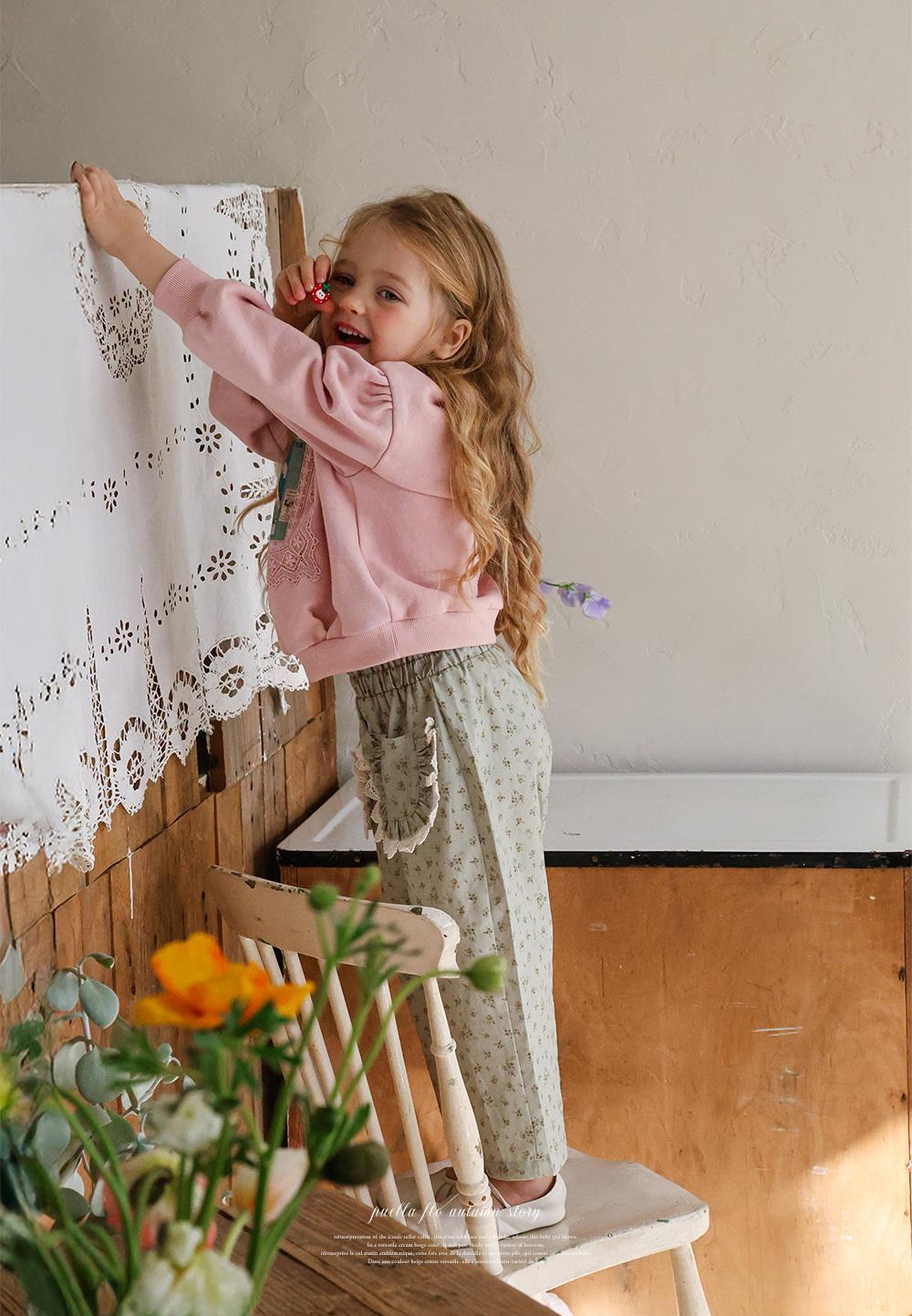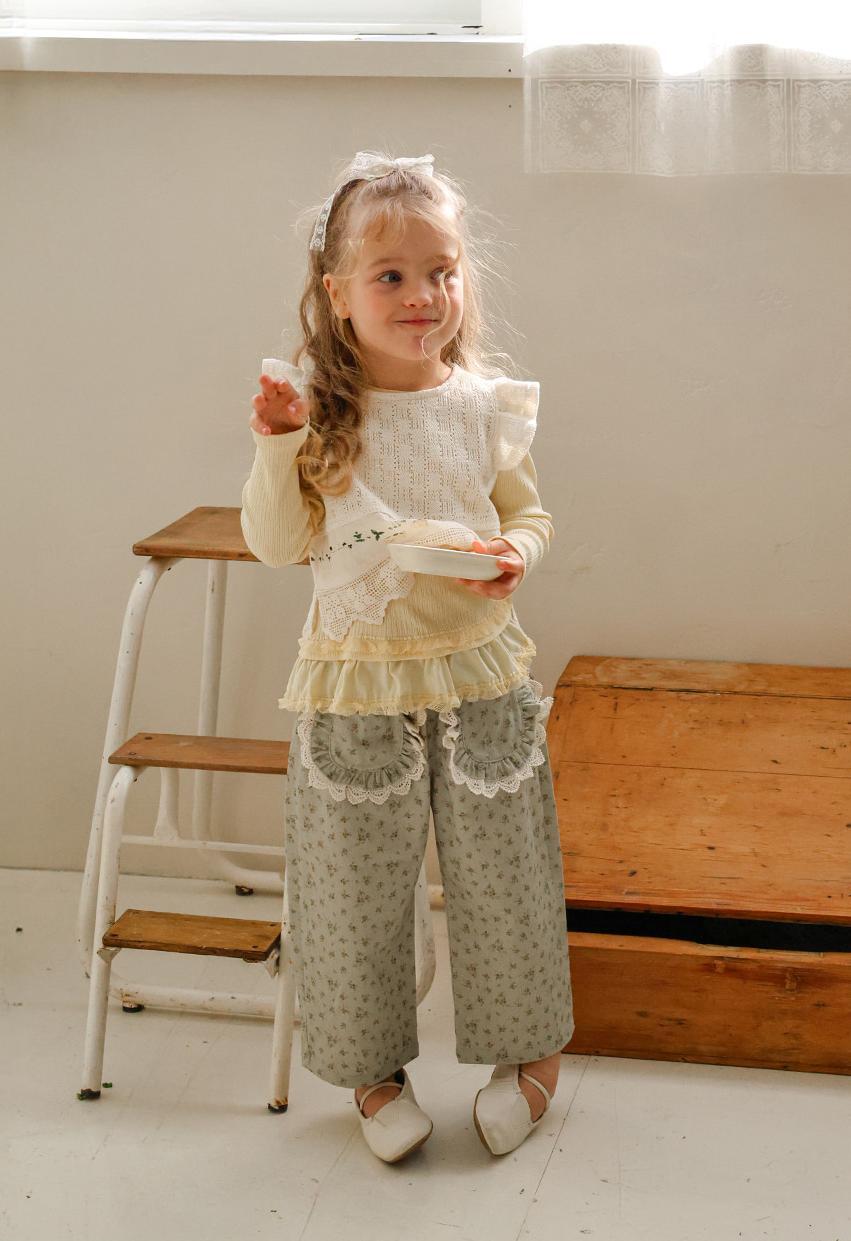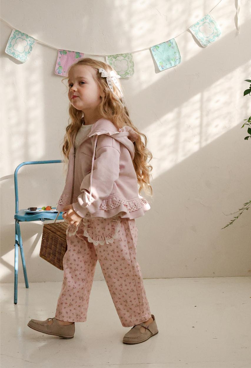 花柄に裾のレースのポケットがガーリーな雰囲気のパンツです。