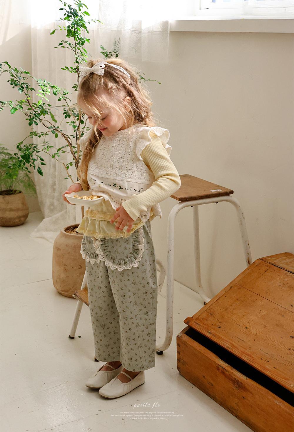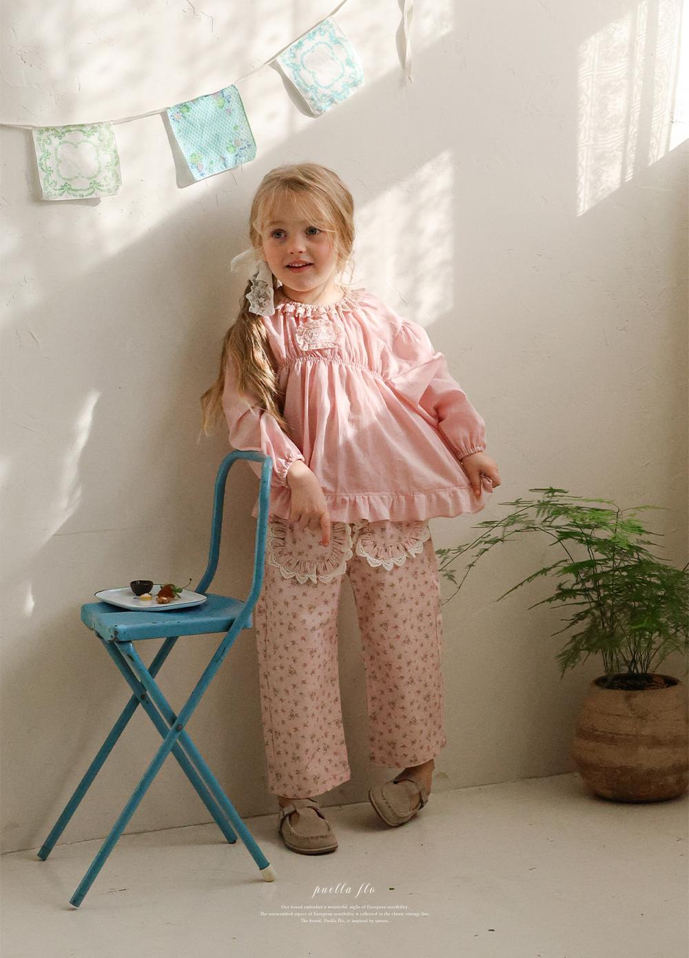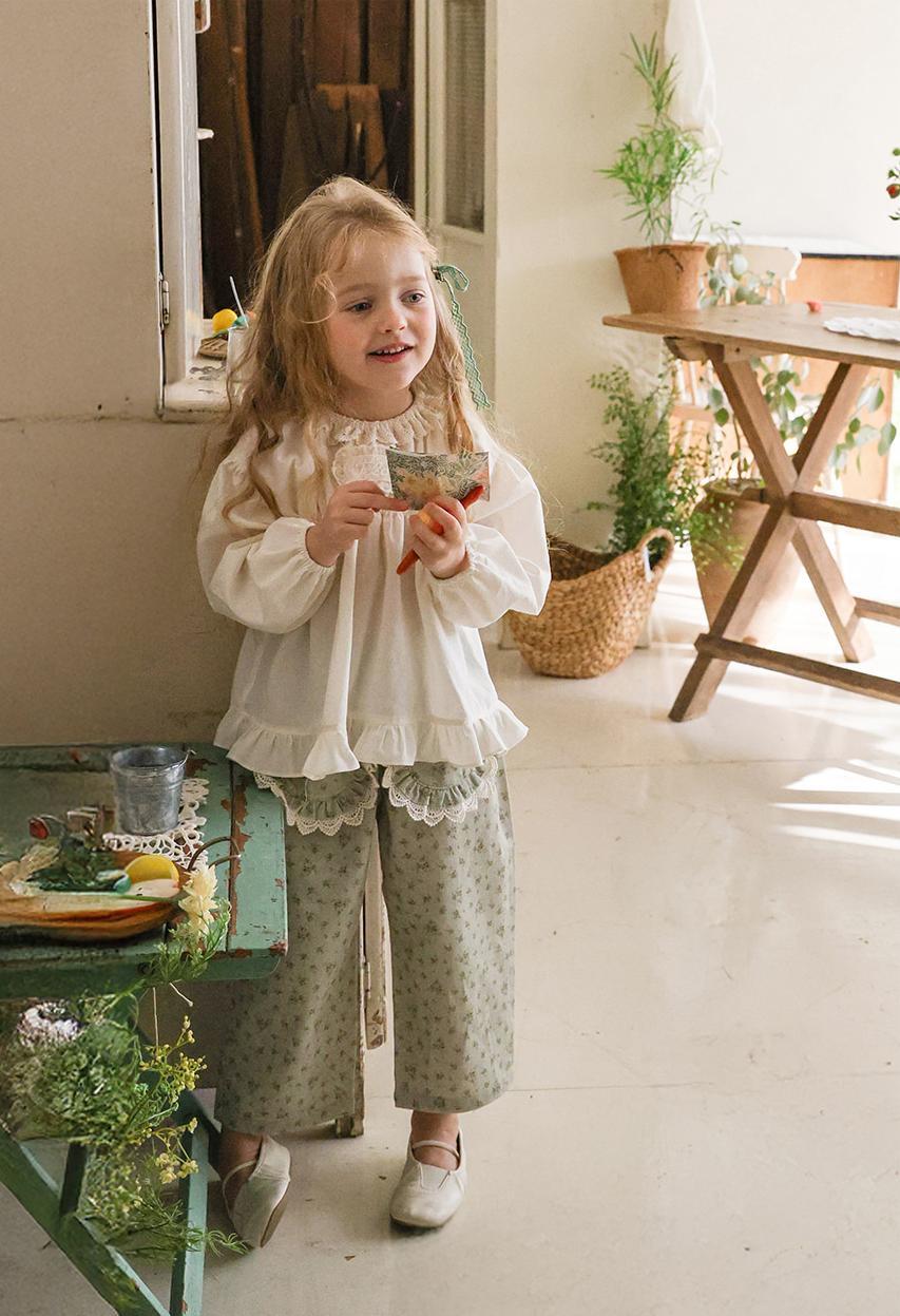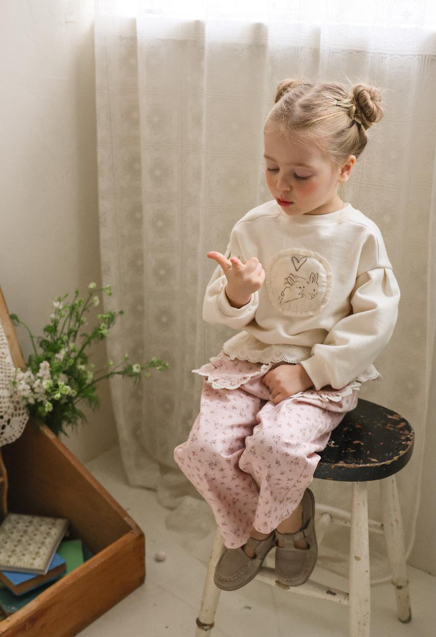 花柄に裾のレースのポケットがガーリーな雰囲気のパンツです。