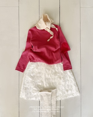 裾はインターロックを施し不規則なテクスチャーを活かすことでカンカンスカートならではの立体感と動きをさりげなく表現しています。