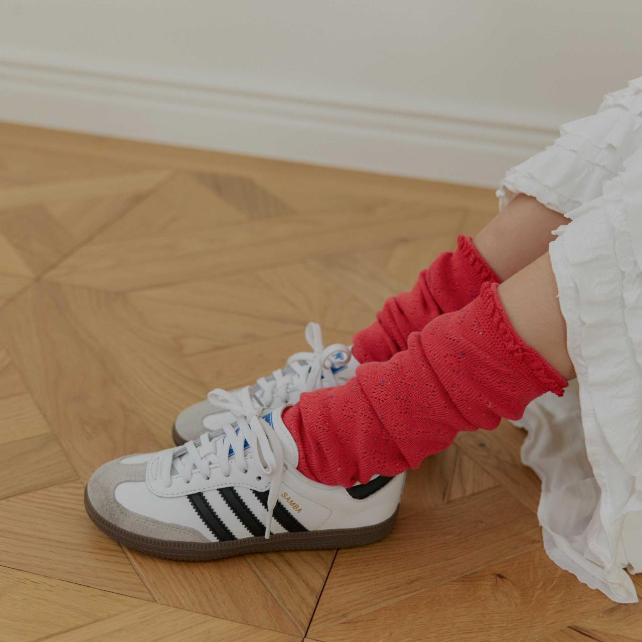 ひざ下までのニーハイ丈で引き上げてすっきり履いたりくしゅっとたるませて履いたりとアレンジが楽しめます。