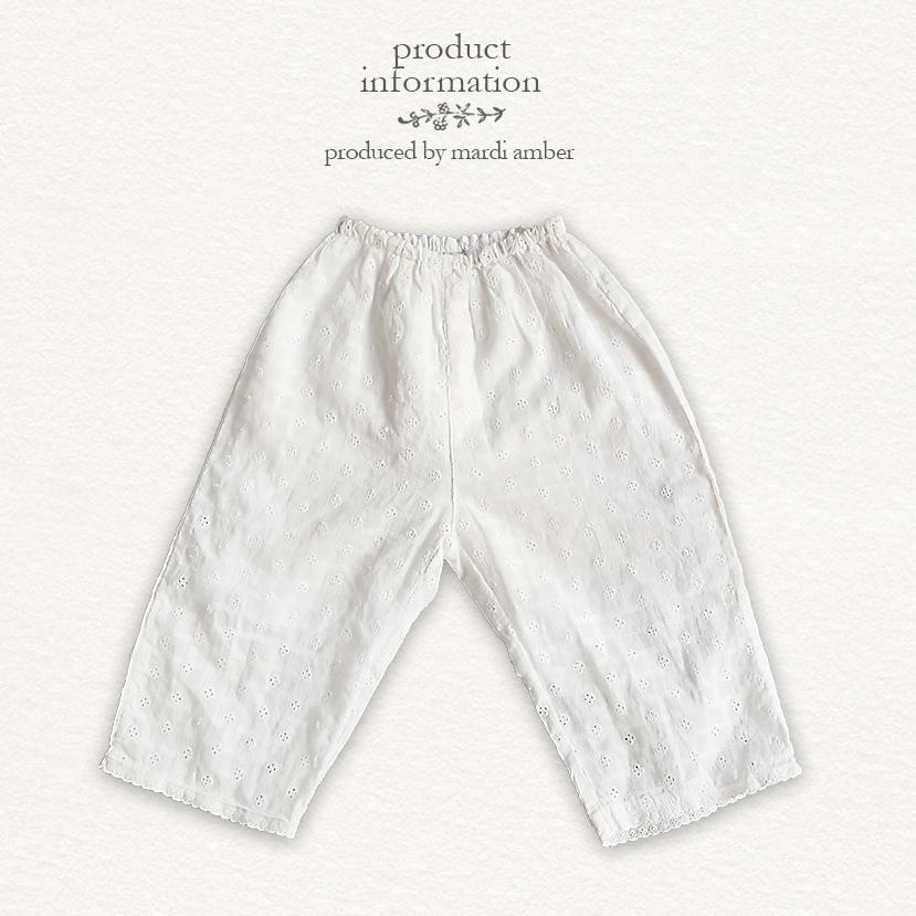 さまざまなコーディネートに取り入れやすいコットンレースパンツです。