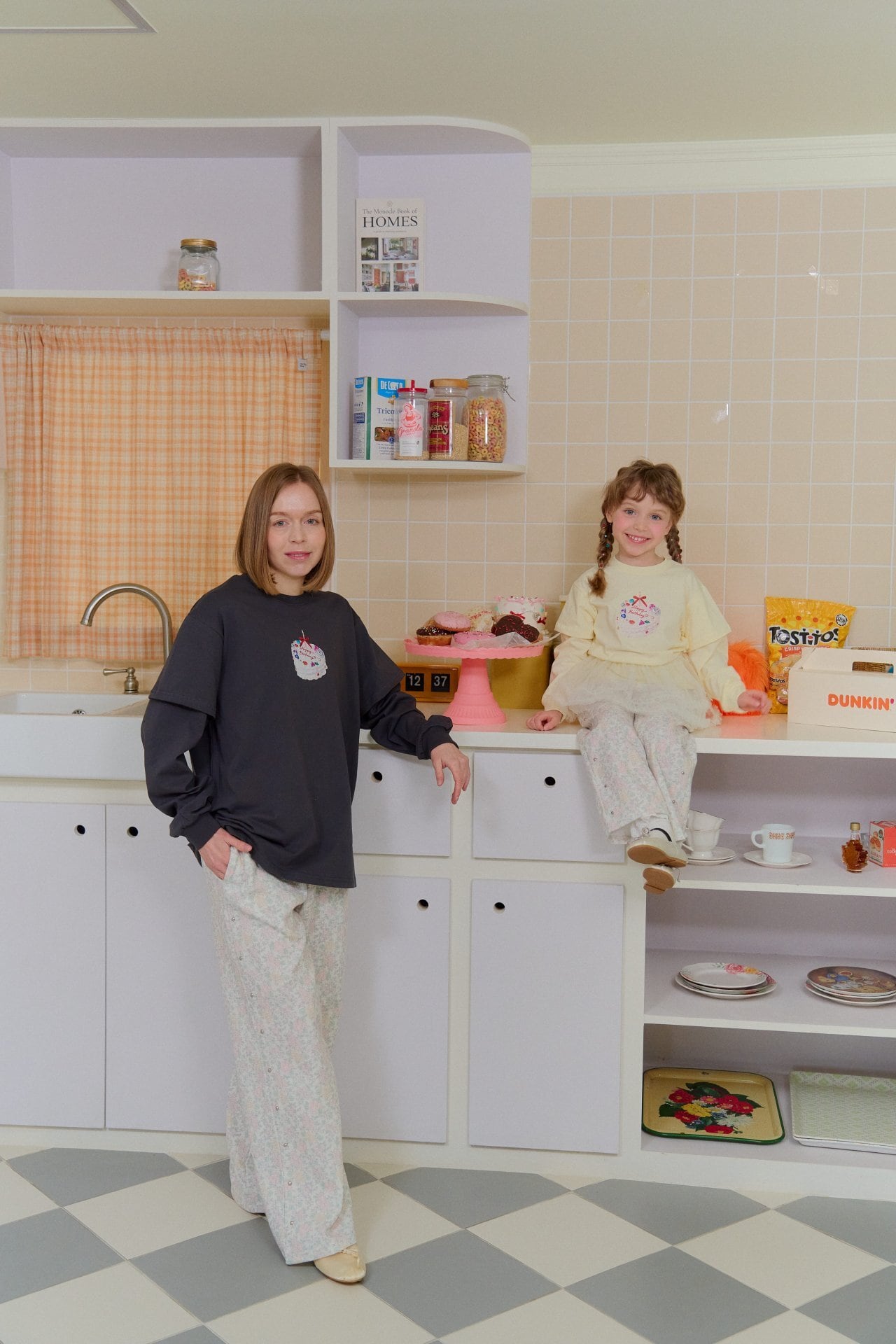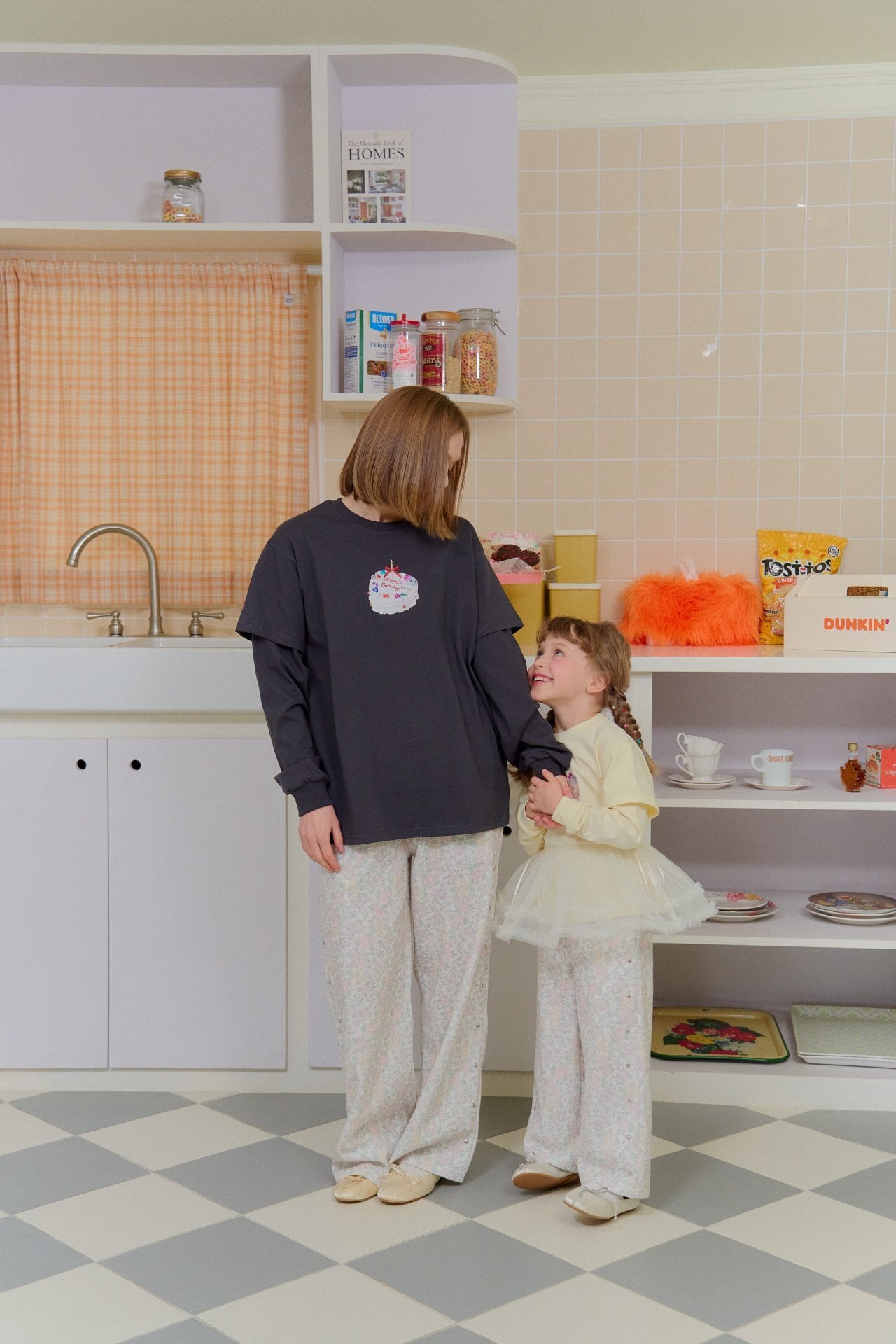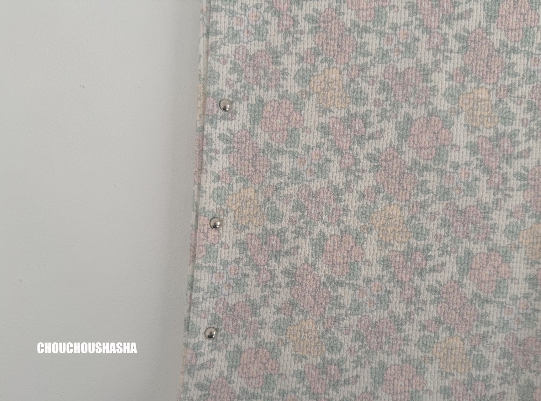 やさしいパステルカラーの花柄プリントが、お子さまには可愛らしく、ママには自然で上品な印象を与えてくれるデザインです。