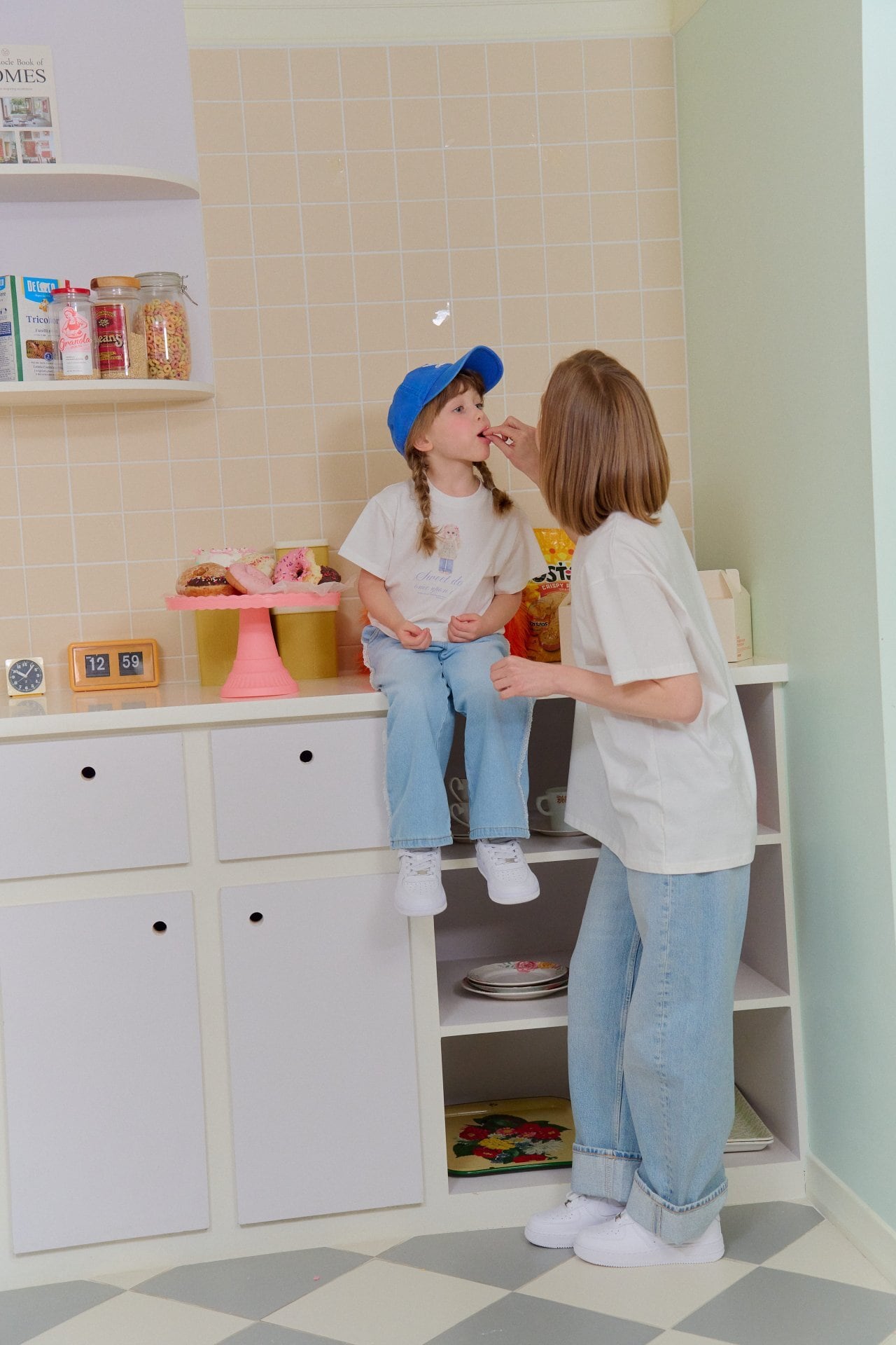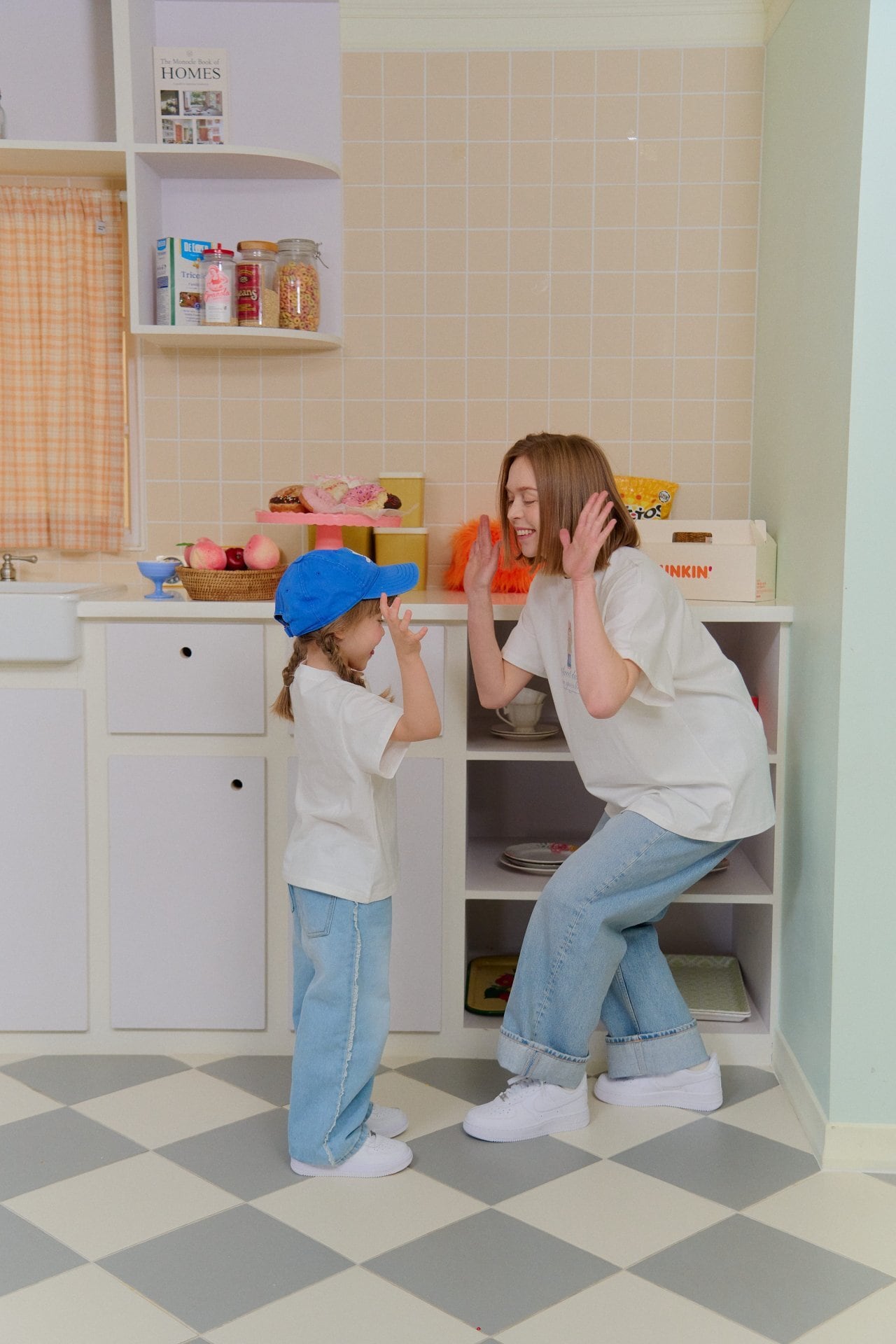 日常の中でさりげなく、お子さまとリンクコーデを楽しめます。