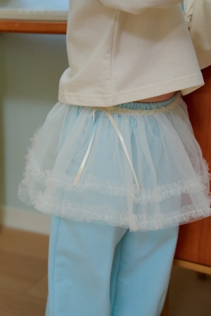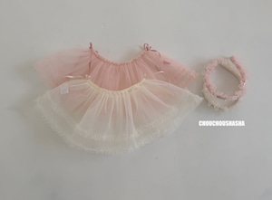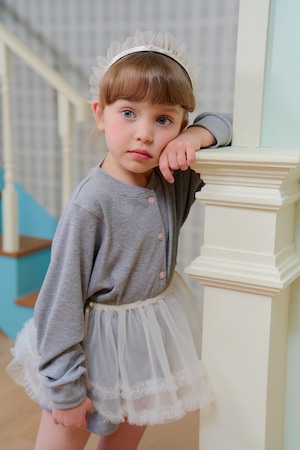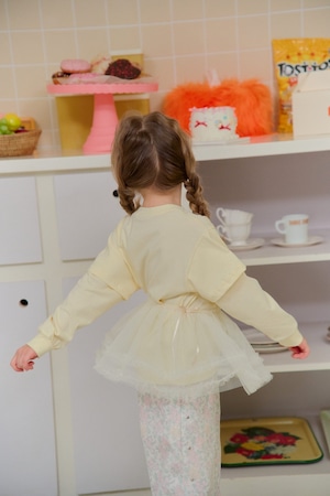 軽くてやさしいチュール生地を重ねることで、ボリューム感がありながらも自然なシルエットに仕上げました。