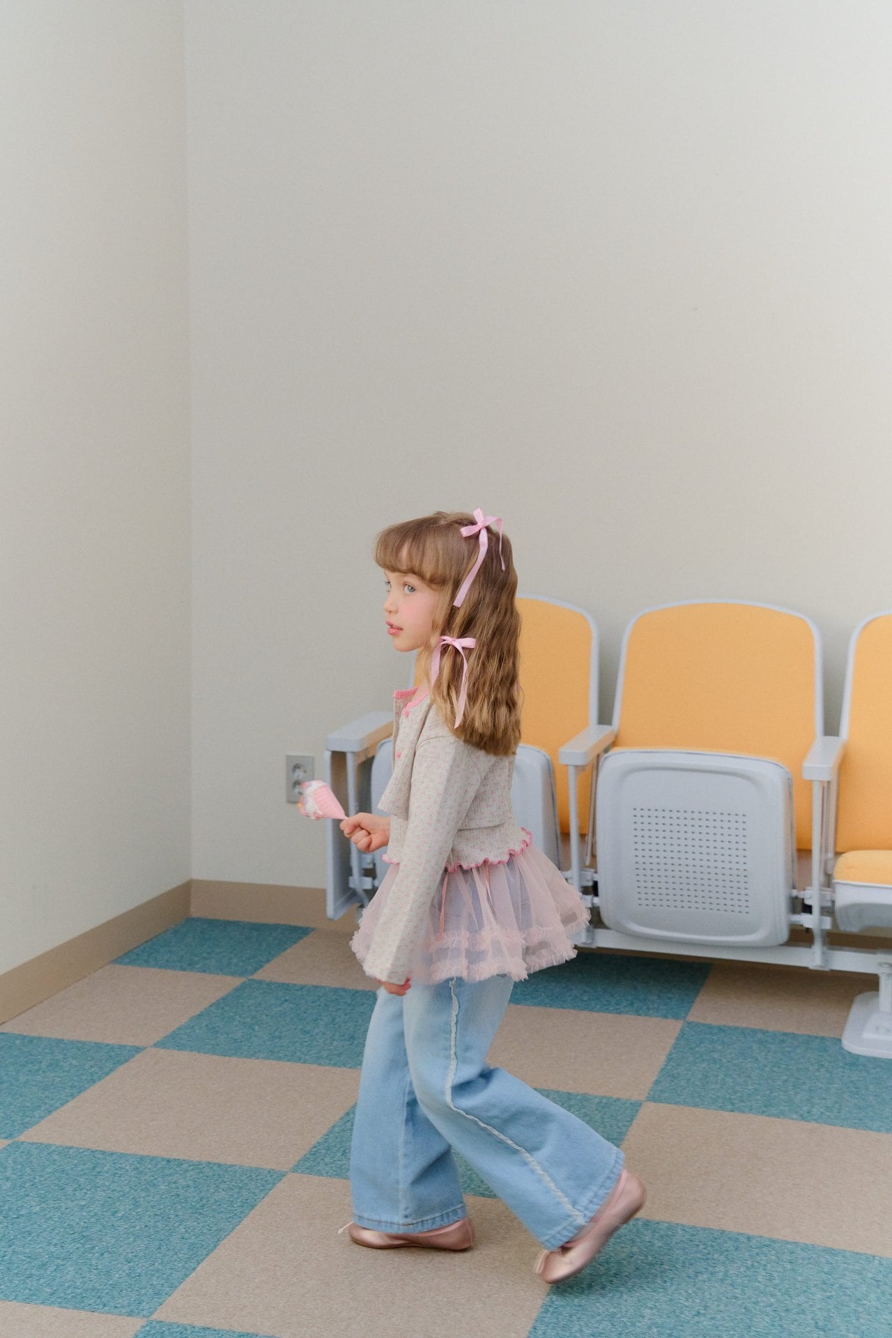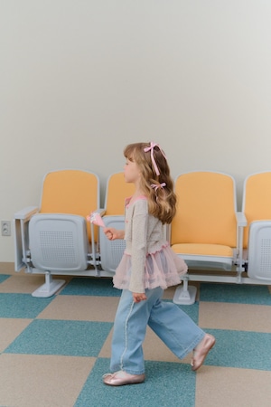 春のコーディネートに取り入れやすい、ガーリーなデニムパンツ。