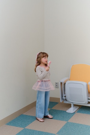 シンプルなトップスと合わせるだけで、女の子らしいコーディネートが完成します。