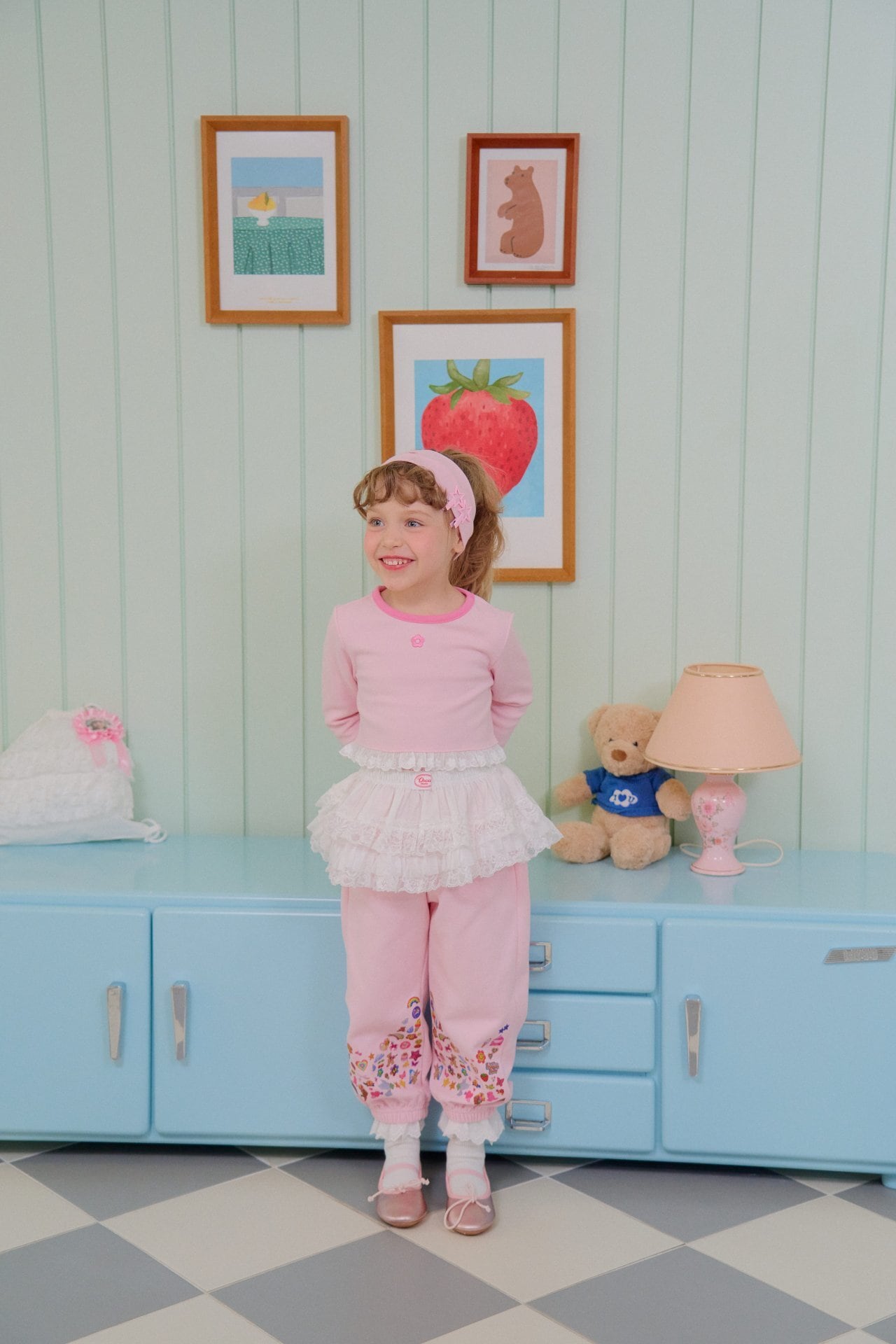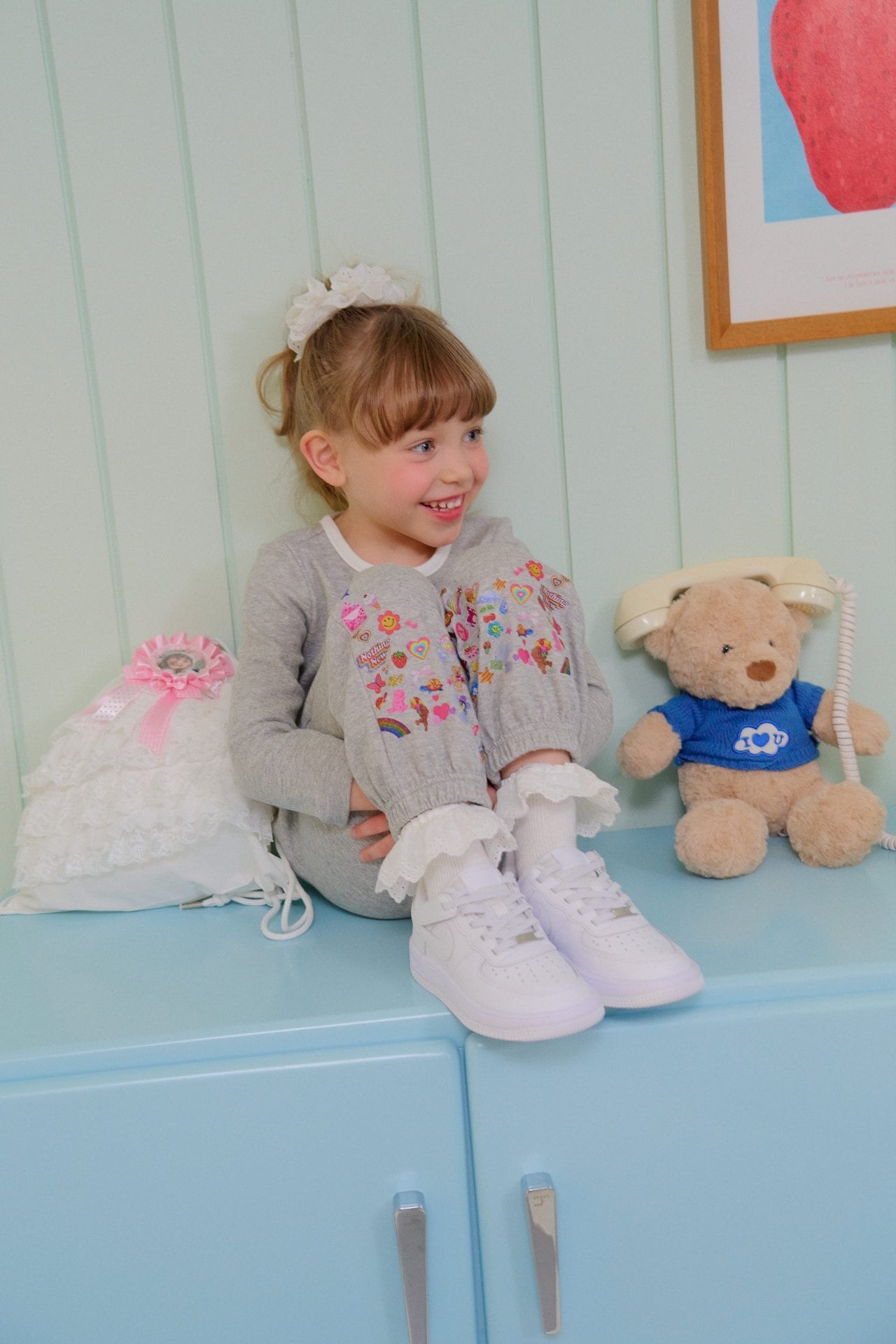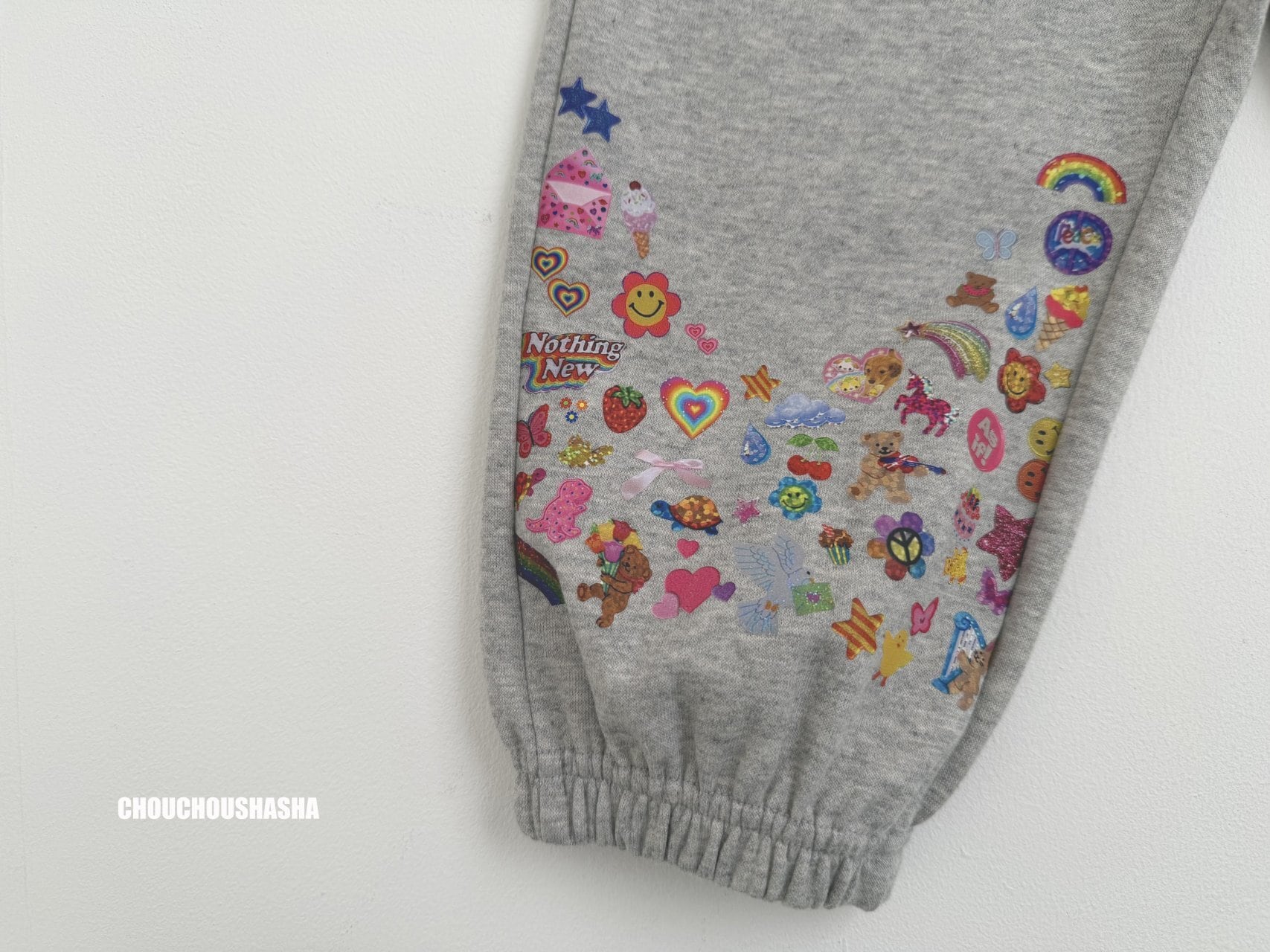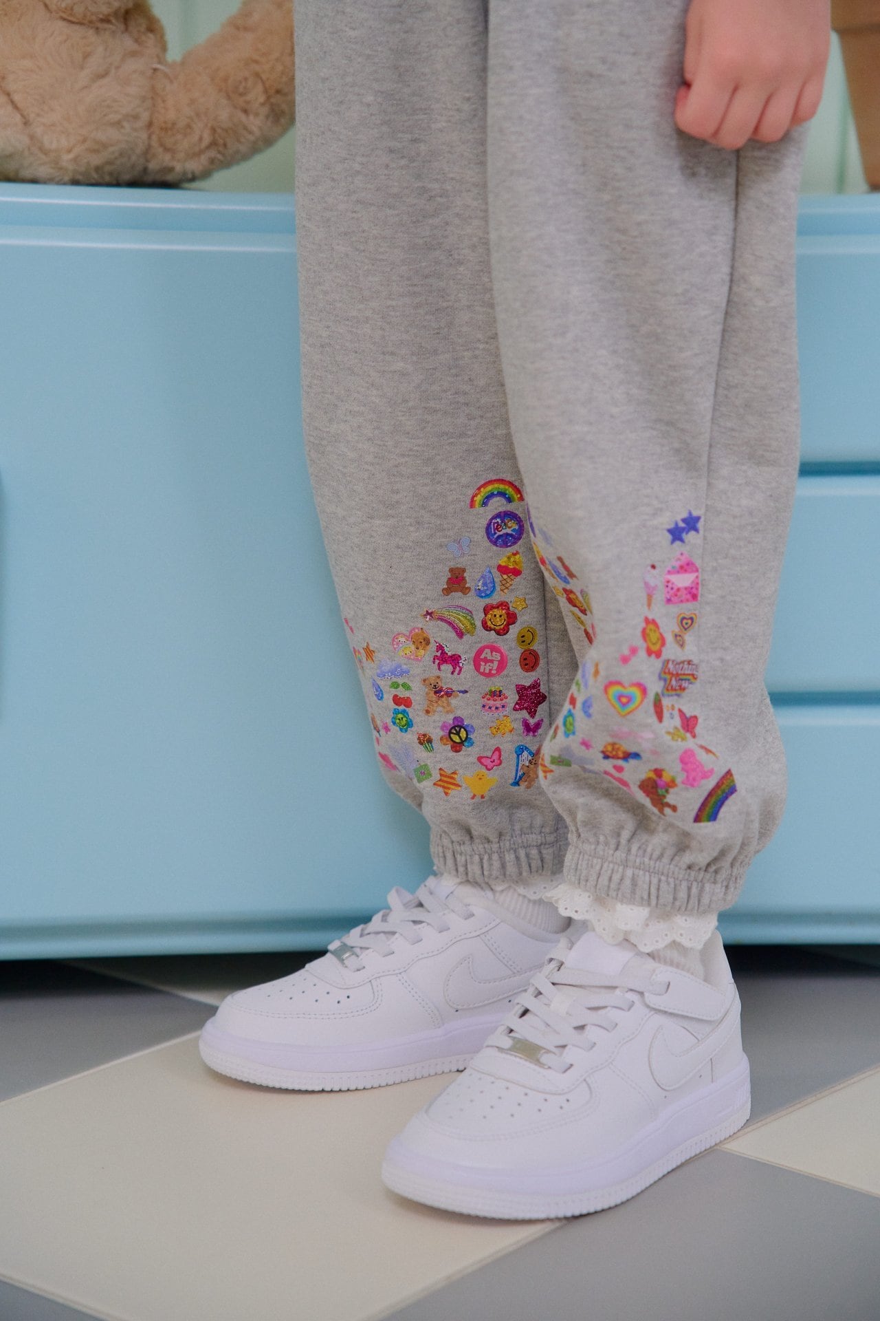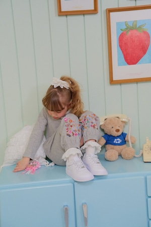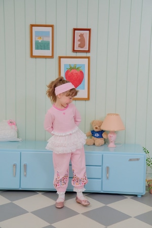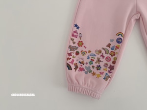 パンツの裾には、ハートやリボン、スター、レインボーなどの愛らしいプリントをあしらい、