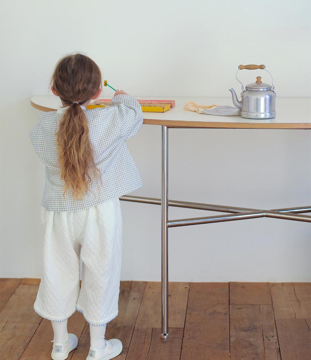裾にはハンドメイドのようなあたたかみを感じさせるメロウ仕上げをあしらい、さりげなく可愛らしさと軽やかさをプラスしました。