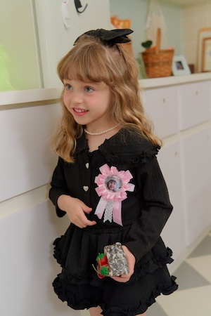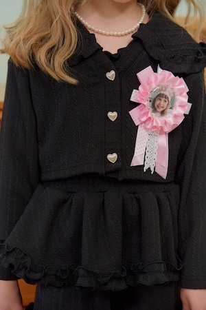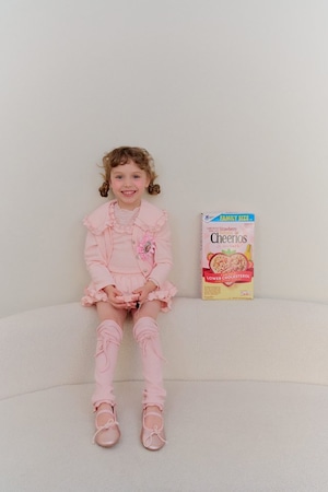 カーディガンにはハート型ボタンをあしらい、細部までこだわったchouchou shashaらしい感性を表現。
