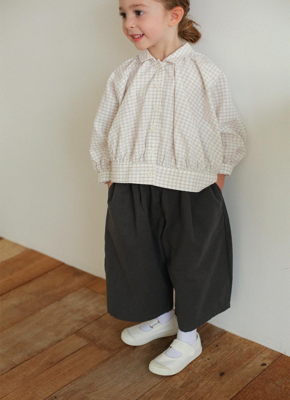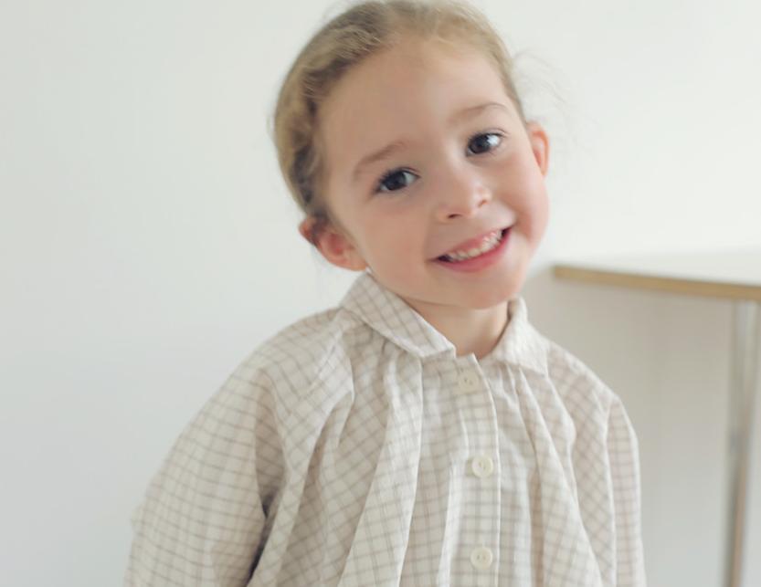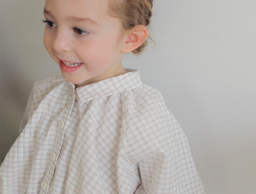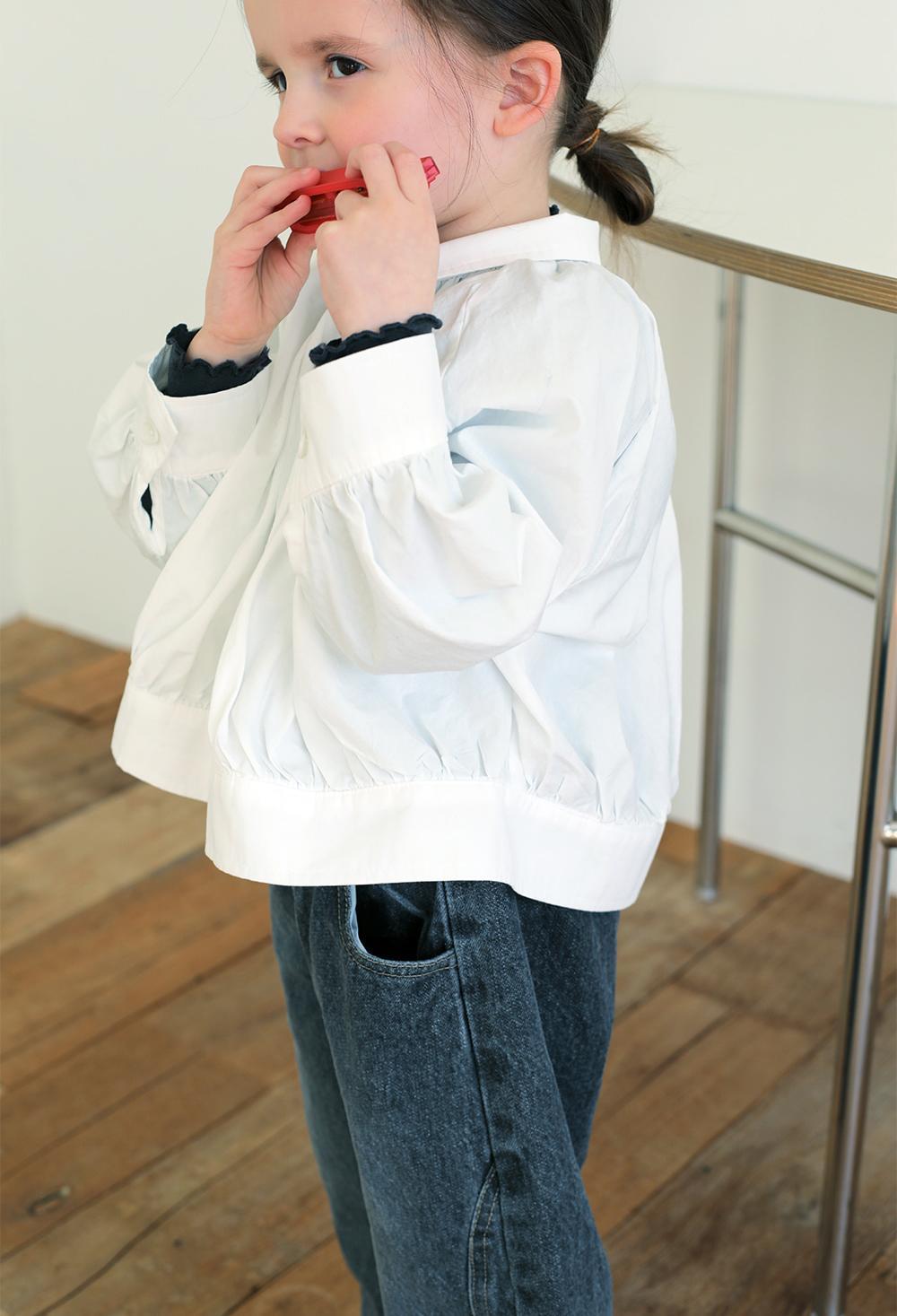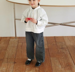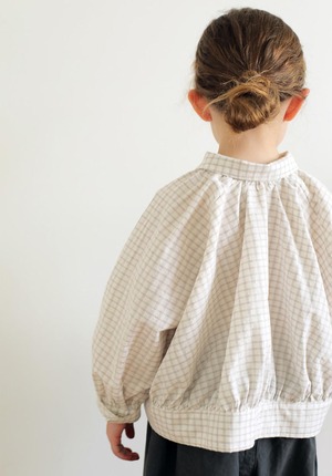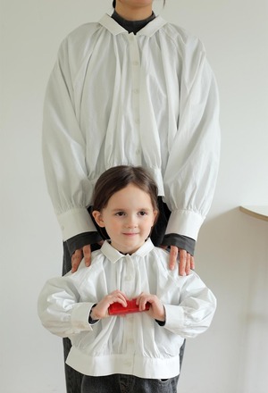 長袖デザインながら、やわらかく軽やかな素材で仕立てているため、快適にご着用いただける一枚です。首元や袖口、裾に自然なギャザーを施し、ふんわりと愛らしいシルエットに仕上げました。