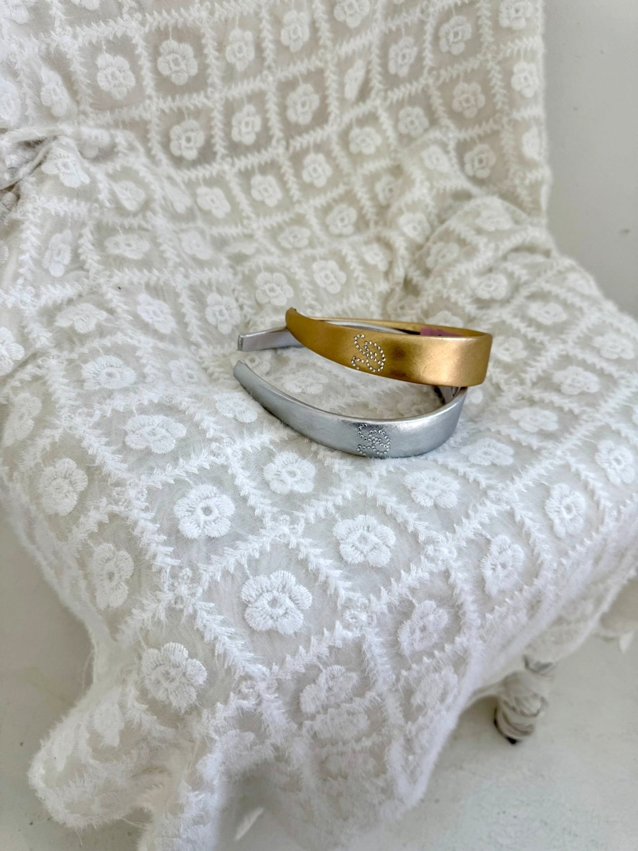 上品なゴールドとシルバーのカラーがヘアスタイルにさりげないアクセントを添えます。