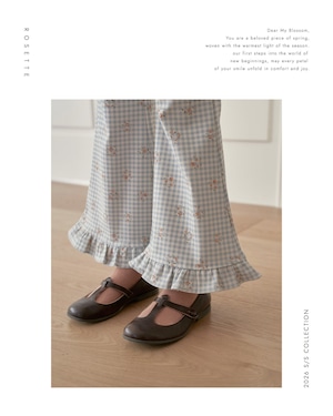 裾に向かってふんわり広がるフレアシルエットが可憐な印象を添え裾にはフリルデザインをあしらいさりげない華やかさをプラスしています。動くたびにやさしく揺れるラインが装いを愛らしく演出します。