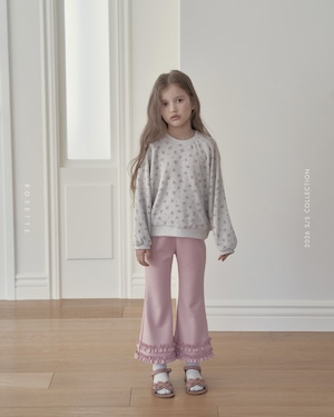 可憐な花柄デザインがやさしい華やかさを添えふんわりとしたパフスリーブが愛らしい印象を引き立てます。ほどよくリラックス感のあるシルエットで動きやすさも兼ね備えています。