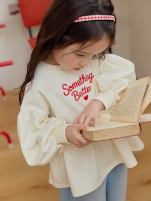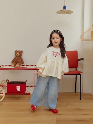 胸元にはレタリング刺繍と小さなハートモチーフを添え可憐なアクセントをプラスしました。