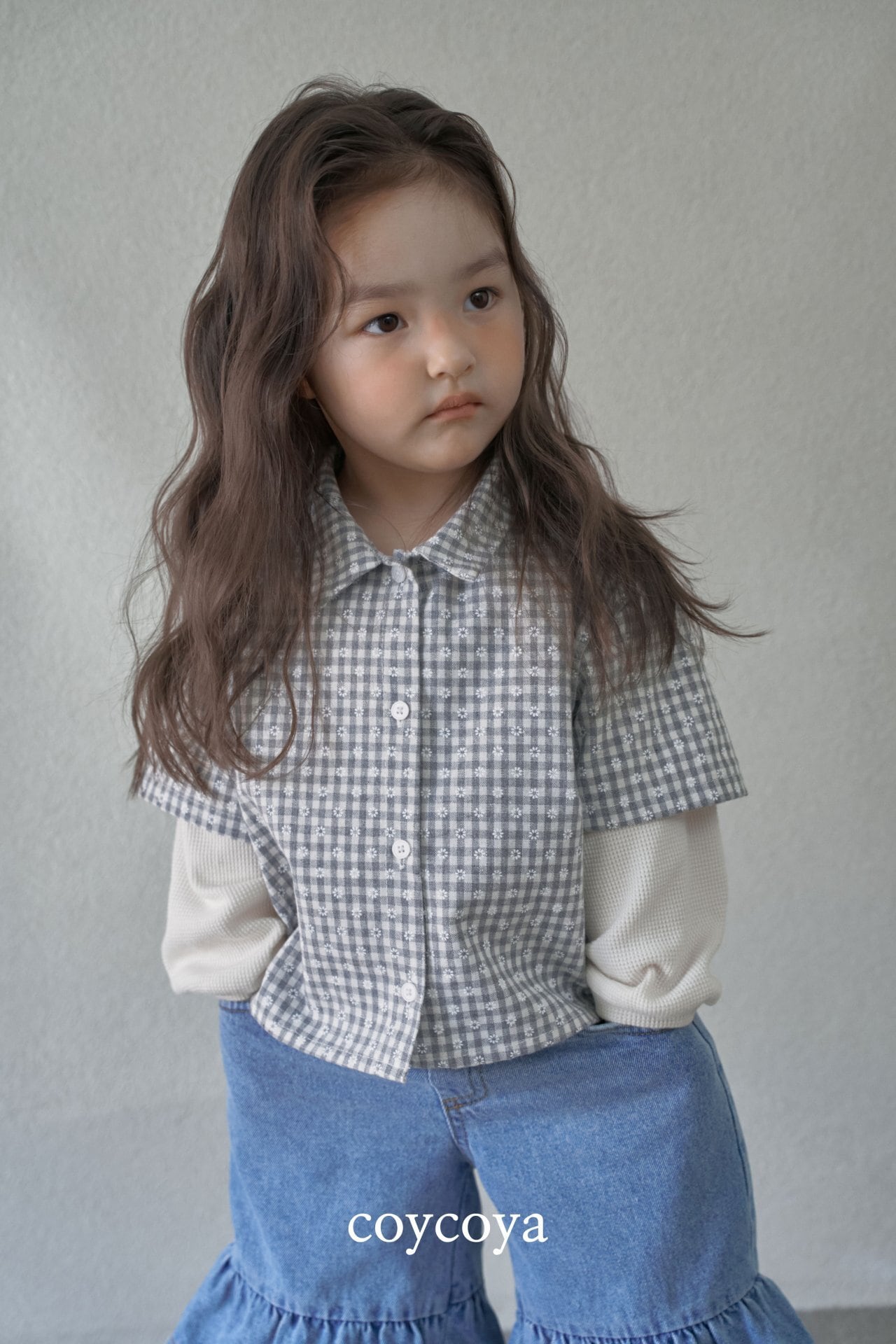 半袖シャツとスウェットを組み合わせたようなミックスデザインで一枚でも印象的なスタイルに仕上がります。チェック柄に立体感のあるフラワーパターンが映えさりげないアクセントとして魅力を添えます。