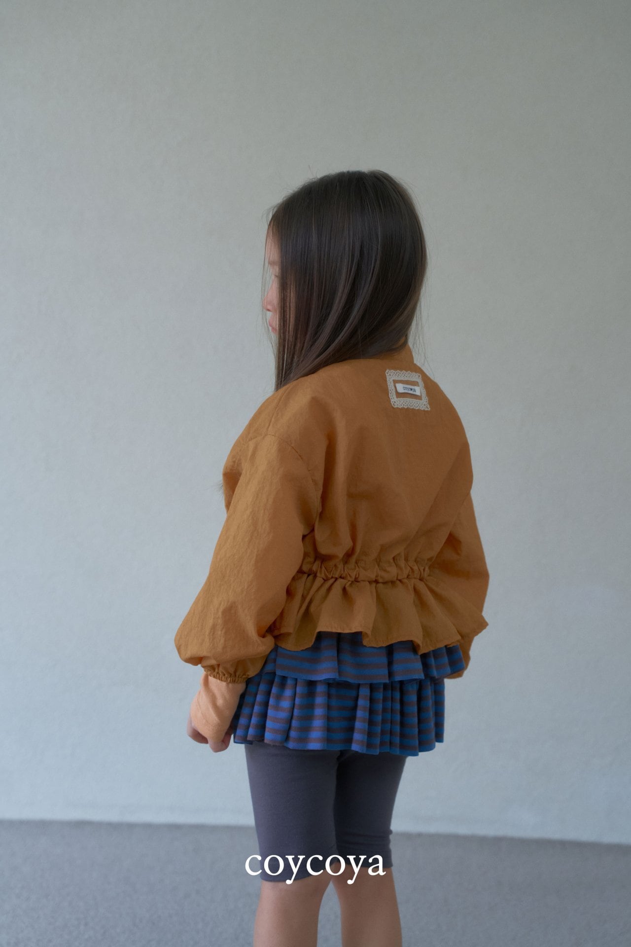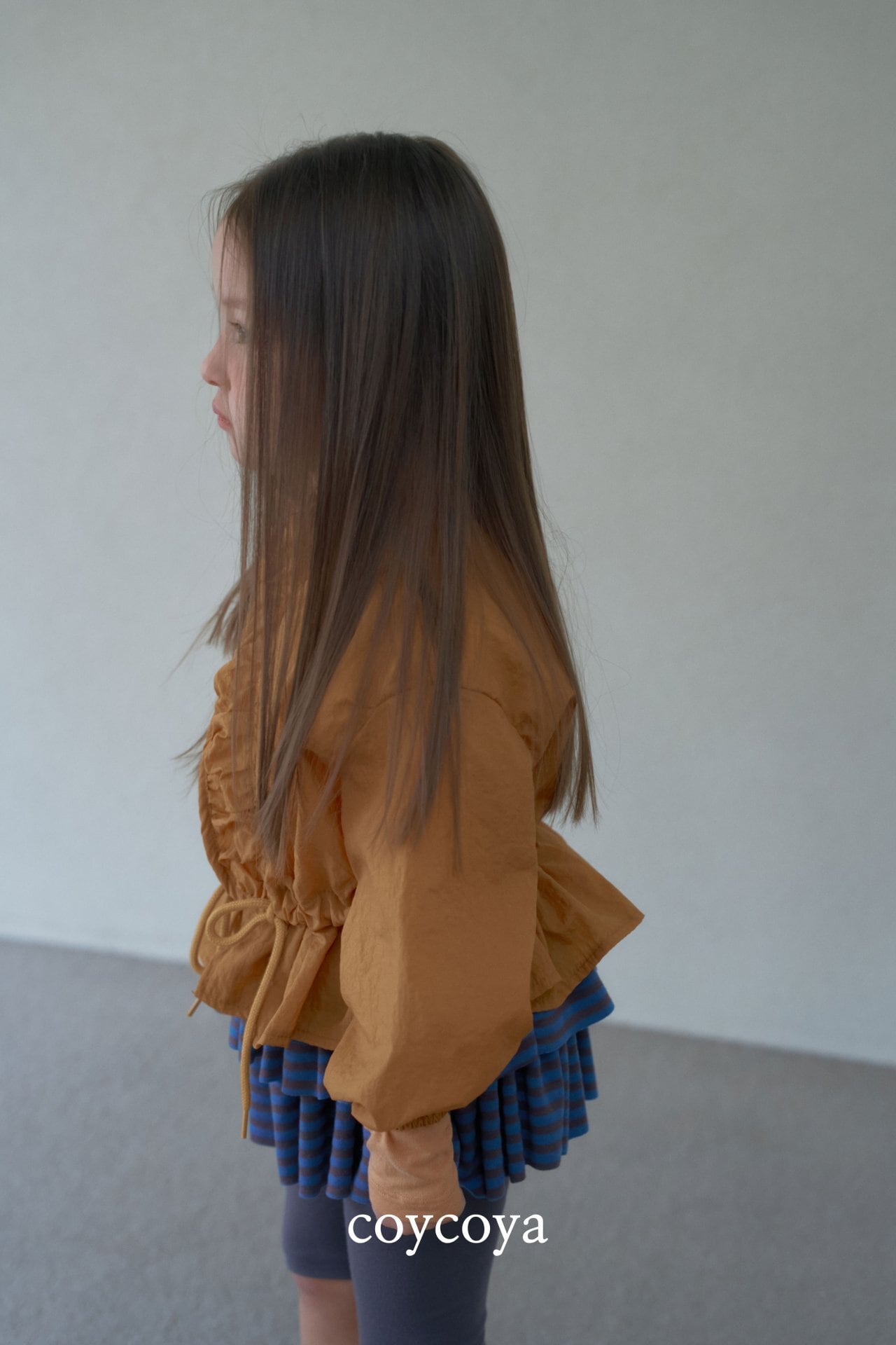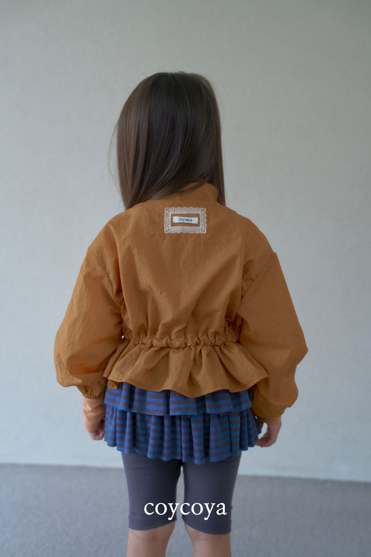 フロントのファスナー部分にはシャーリングディテール入りのジップカバーをあしらいユニークさと愛らしさを兼ね備えたデザインに仕上げました。軽量でスリムなナイロンファスナーを使用し着用時の負担を抑えています。