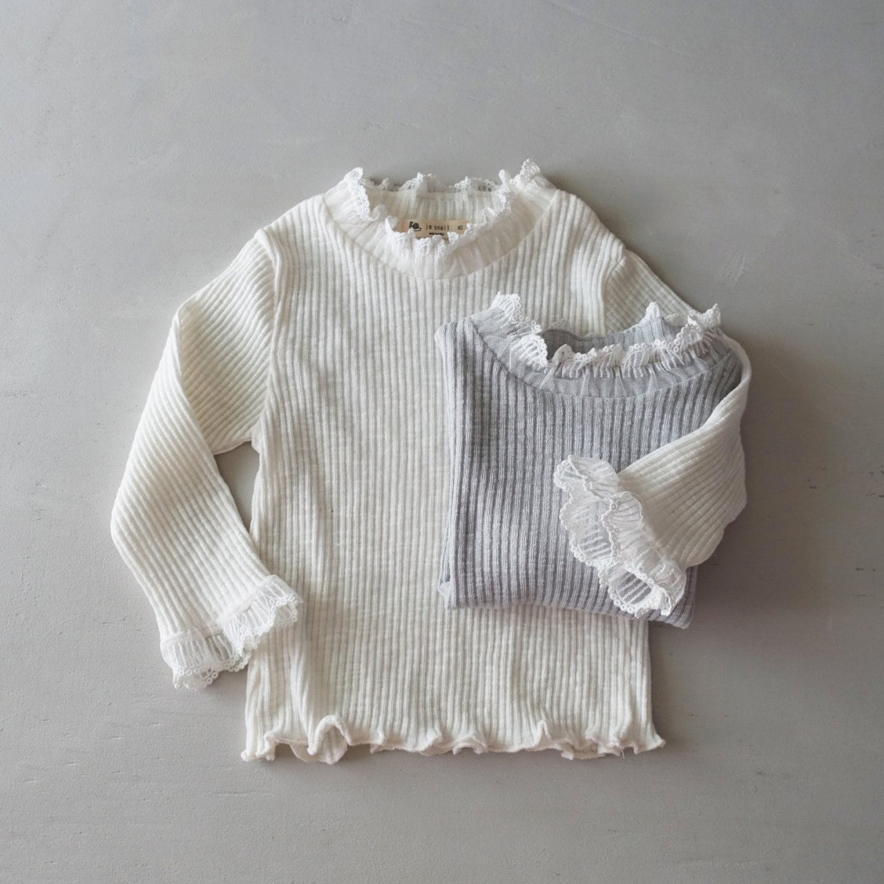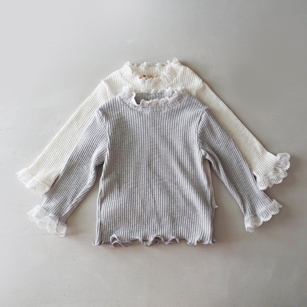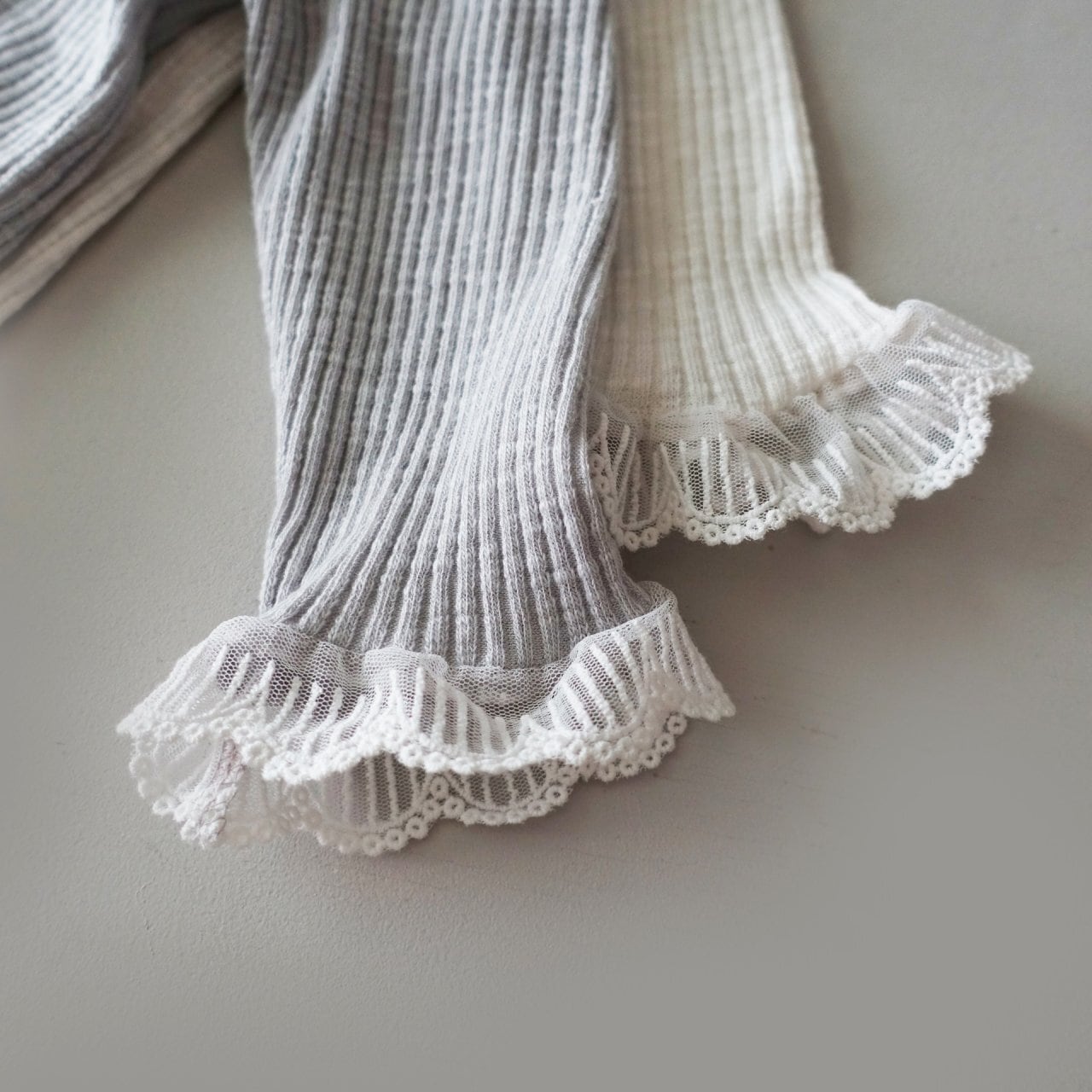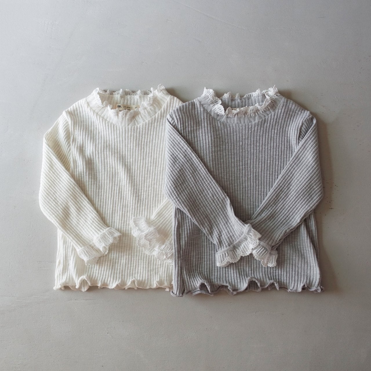肌に優しく馴染むナチュラルなリブ生地に、可憐なレースフリルを添えました。