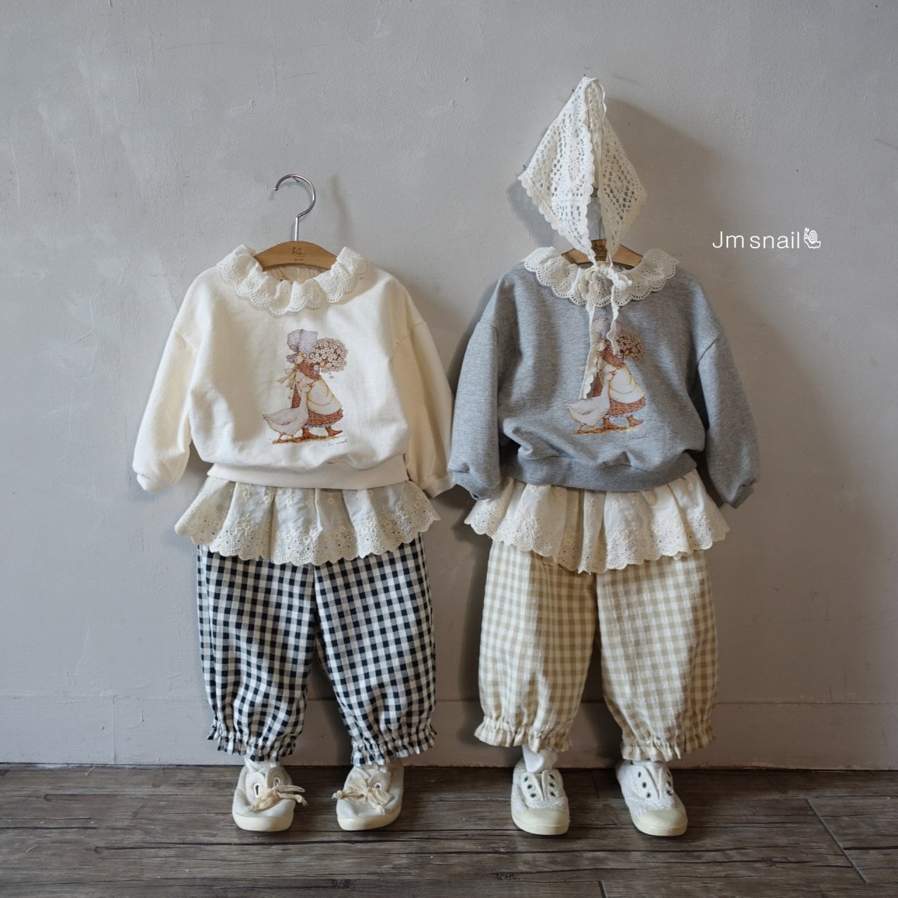 細かなチェック柄が目を引く、柔らかなコットン素材のパンツです。