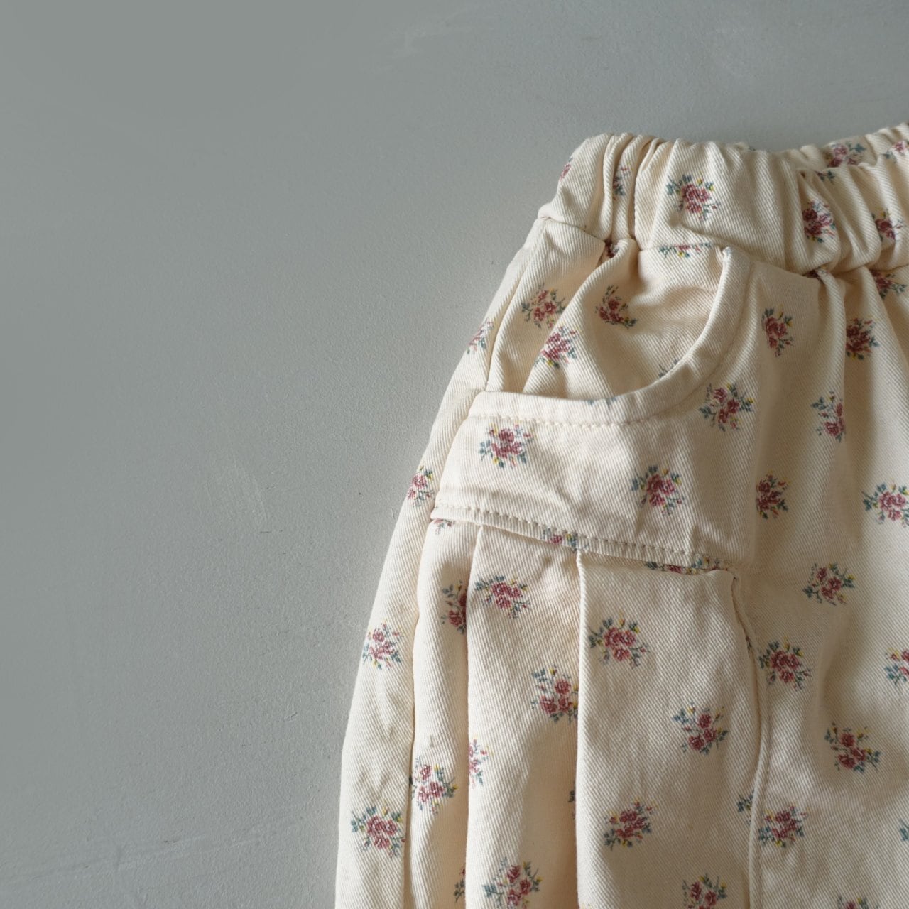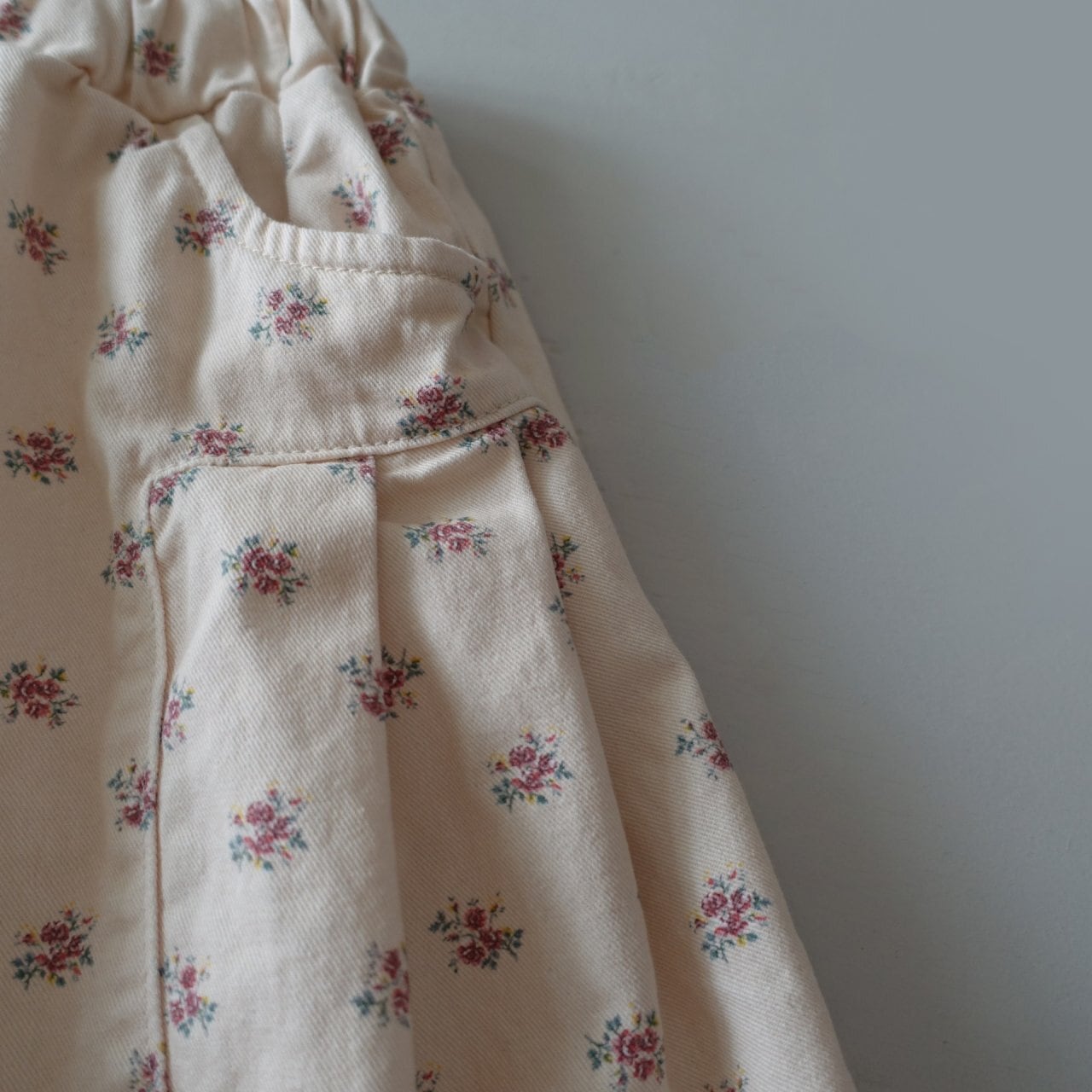 柔らかなクリームベースに、繊細な小花柄を散りばめました。主張しすぎないヴィンテージライクな花柄が、ナチュラルで優しい雰囲気を演出。どんなスタイルにも馴染む、デイリー使いにぴったりなカラーです。