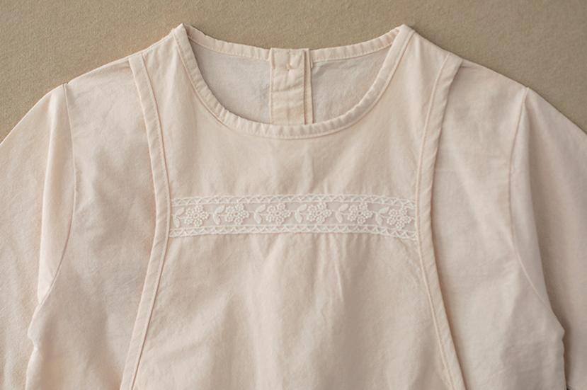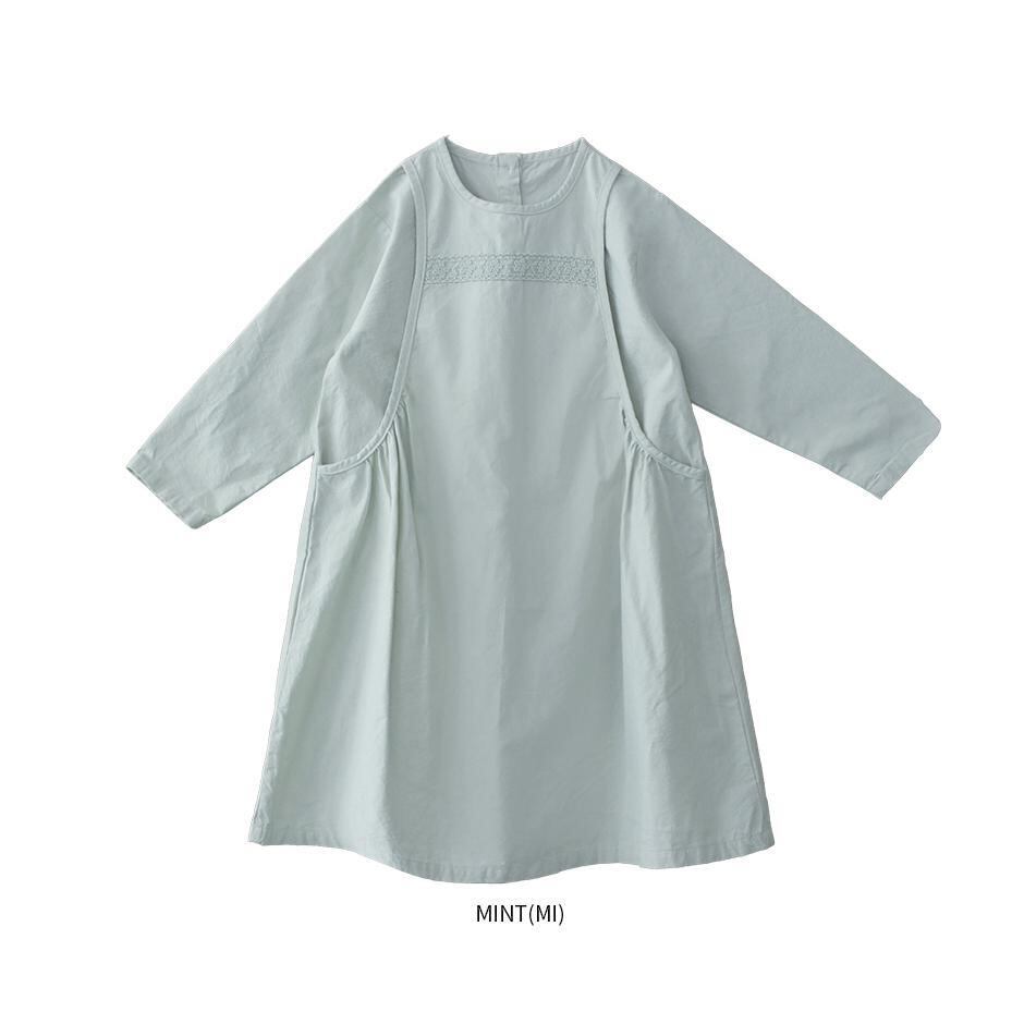 ふんわり広がるAラインシルエットに、まるでエプロンを重ね着しているようなユニークなデザインをプラス。シンプルながらも、どこか懐かしく、洗練されたこだわりが光る一着です。