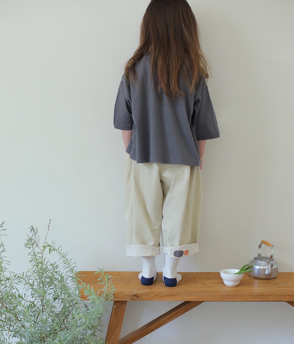 コットン100%の優しい風合いを活かしたこのパンツは、穿いた時のシルエットが「ころん」と丸く落ちる、計算されたラインが自慢の一枚。