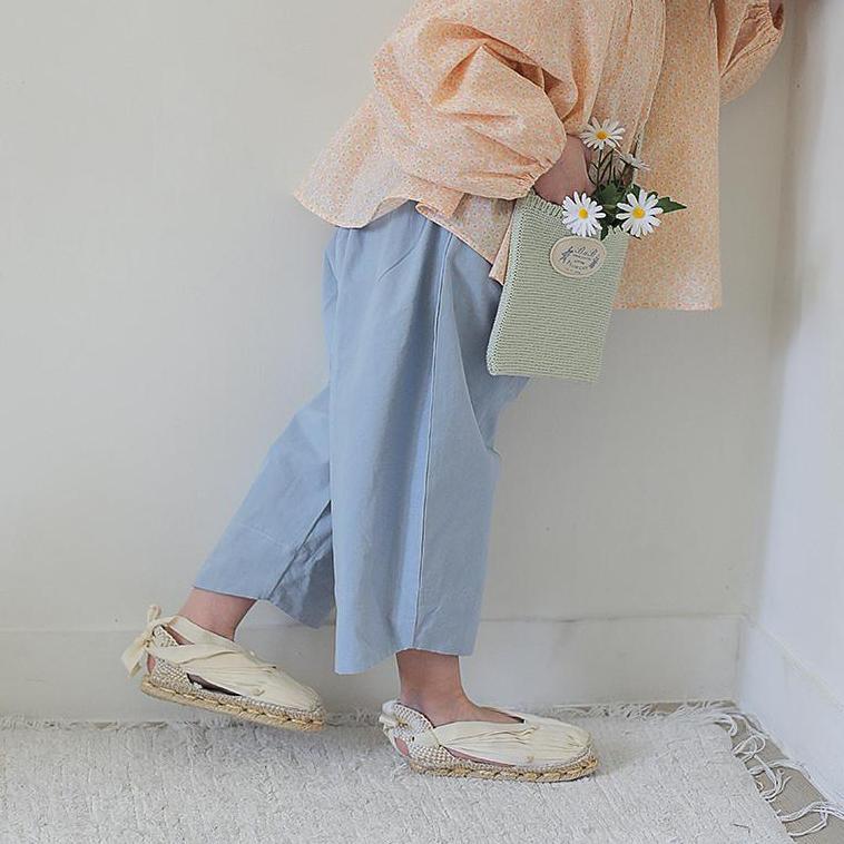 ナチュラルなカラーと、さりげない配色のディテールが愛らしいコットンパンツです。