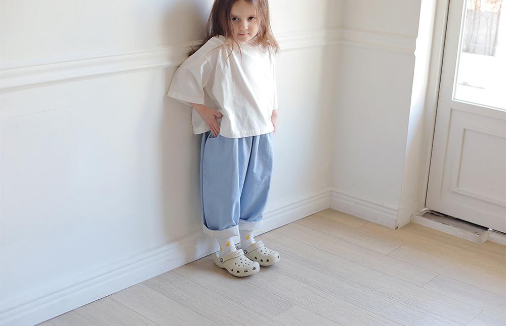 ゆったりとしたフィッティングなので、元気いっぱい動き回るお子様も一日中リラックスして過ごせます。