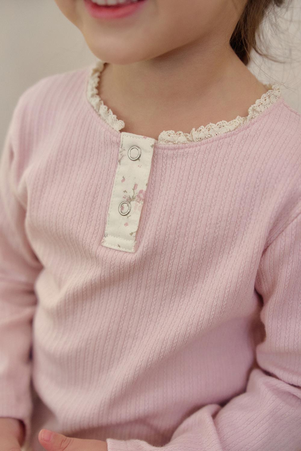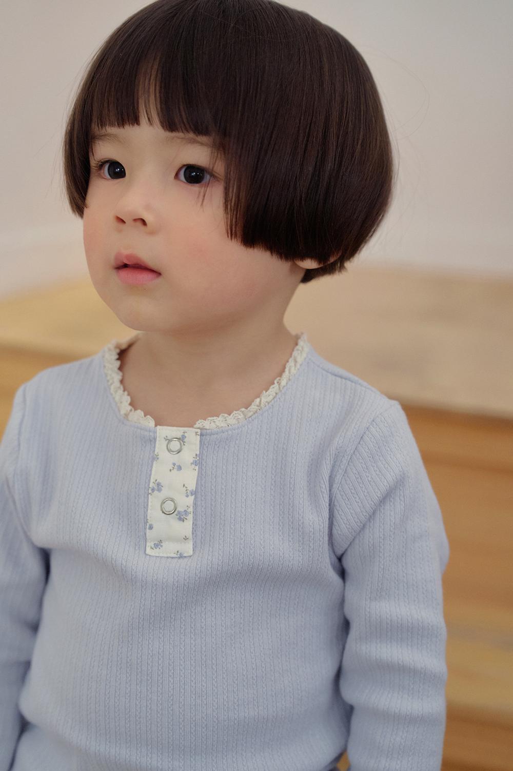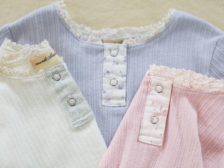 フロントの前立て部分には可憐なフローラル生地をあしらい、さりげないアクセントに。シンプルながらも愛らしさを感じるデザインに仕上げました。