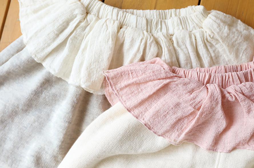 ウエスト部分にはさりげないフリルデザインをあしらい、シンプルな中にもガーリーな可愛らしさをプラス。トップスをインしても可愛く着こなせます。