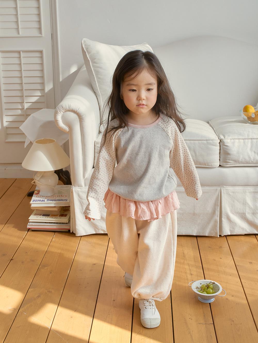 さらりとした肌ざわりのコットン素材を使用し、お子さまにも快適なはき心地。動きやすくデイリー使いにぴったりの一枚です。