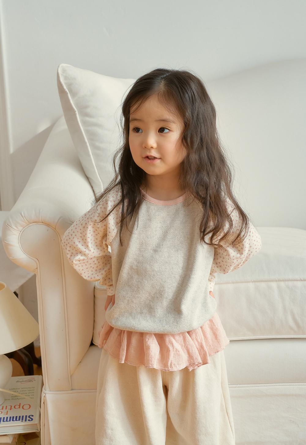 やわらかく通気性の良いコットンアイレット生地を使用し、お子さまにも心地よい着心地。ナチュラルでやさしい風合いが春のコーディネートにぴったりです。