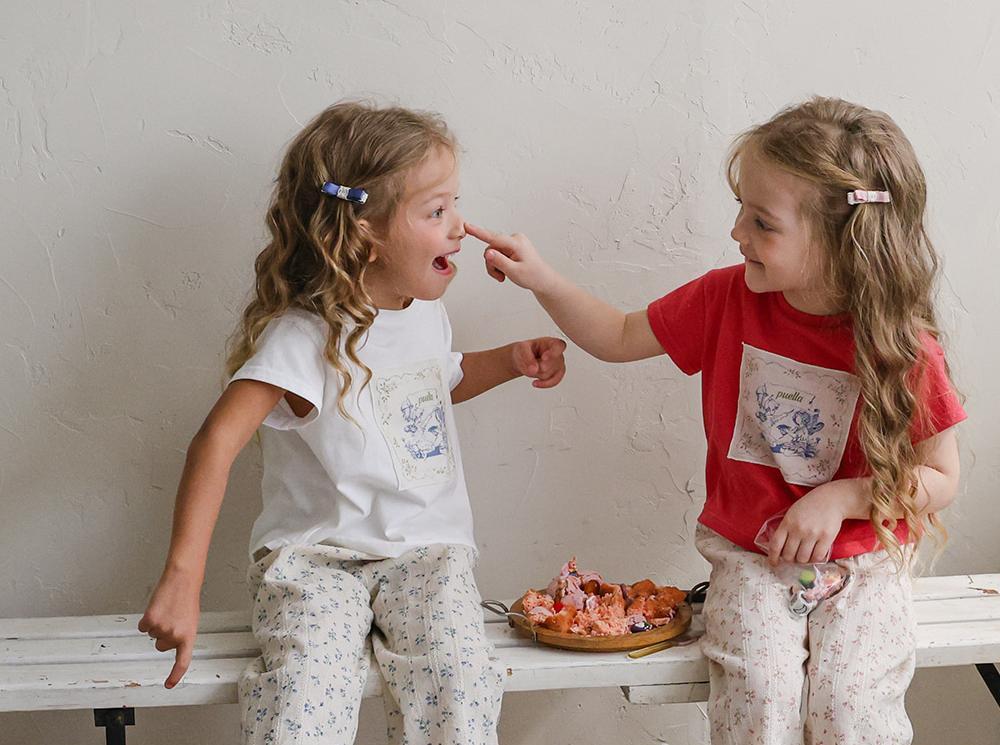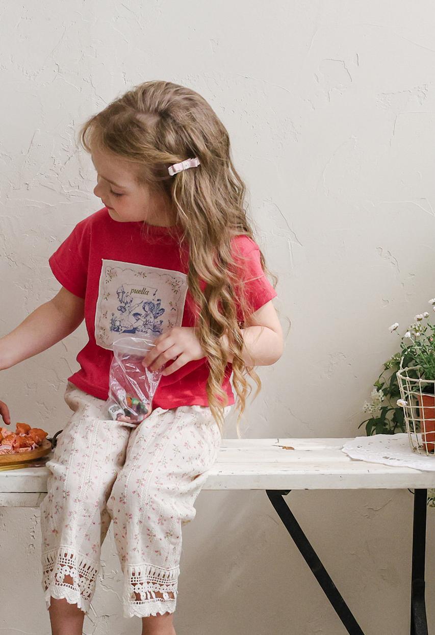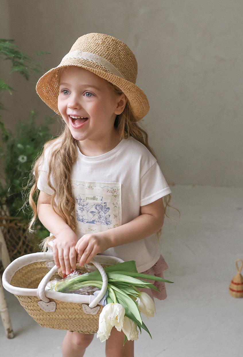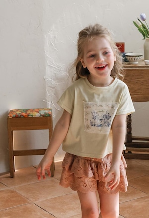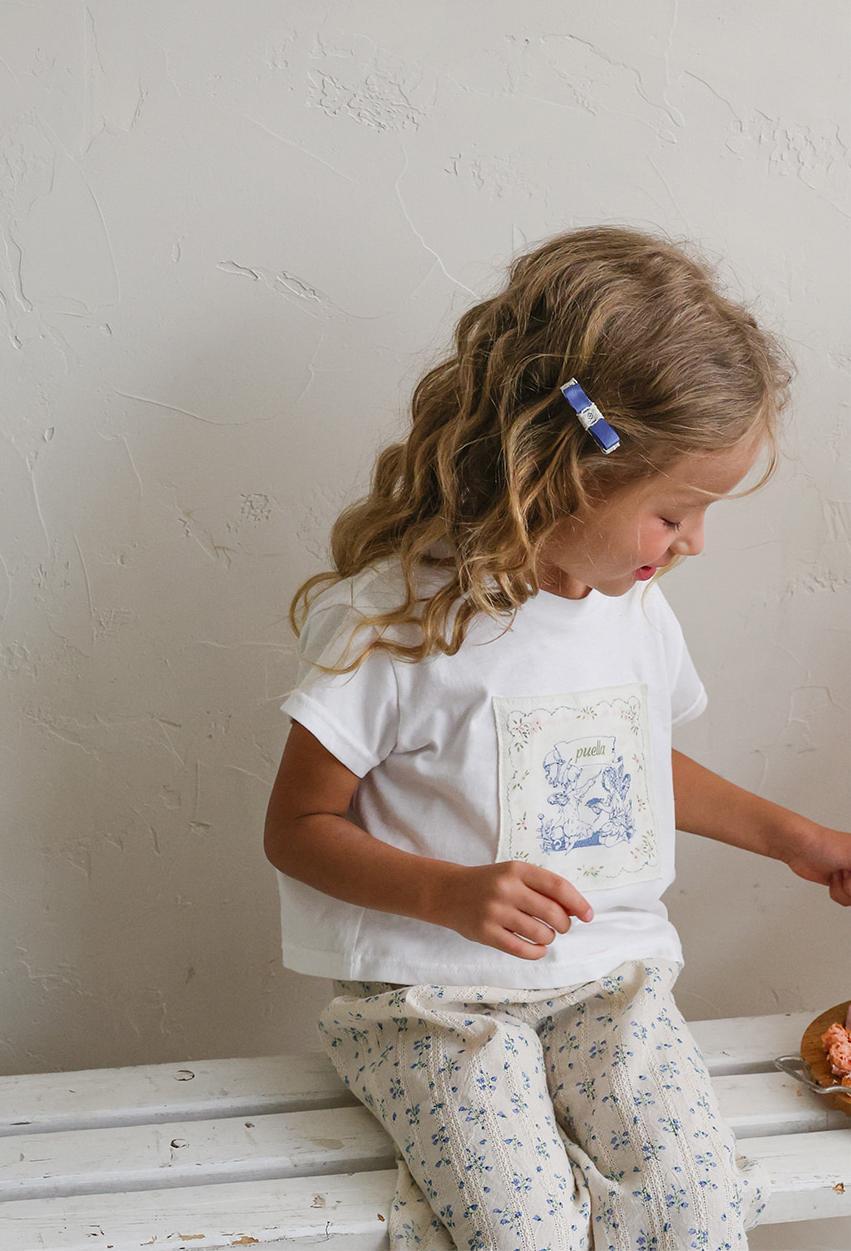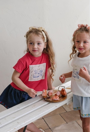 胸元には愛らしいイラストのパッチがほどこされ、シンプルながらも個性が光る一枚です。