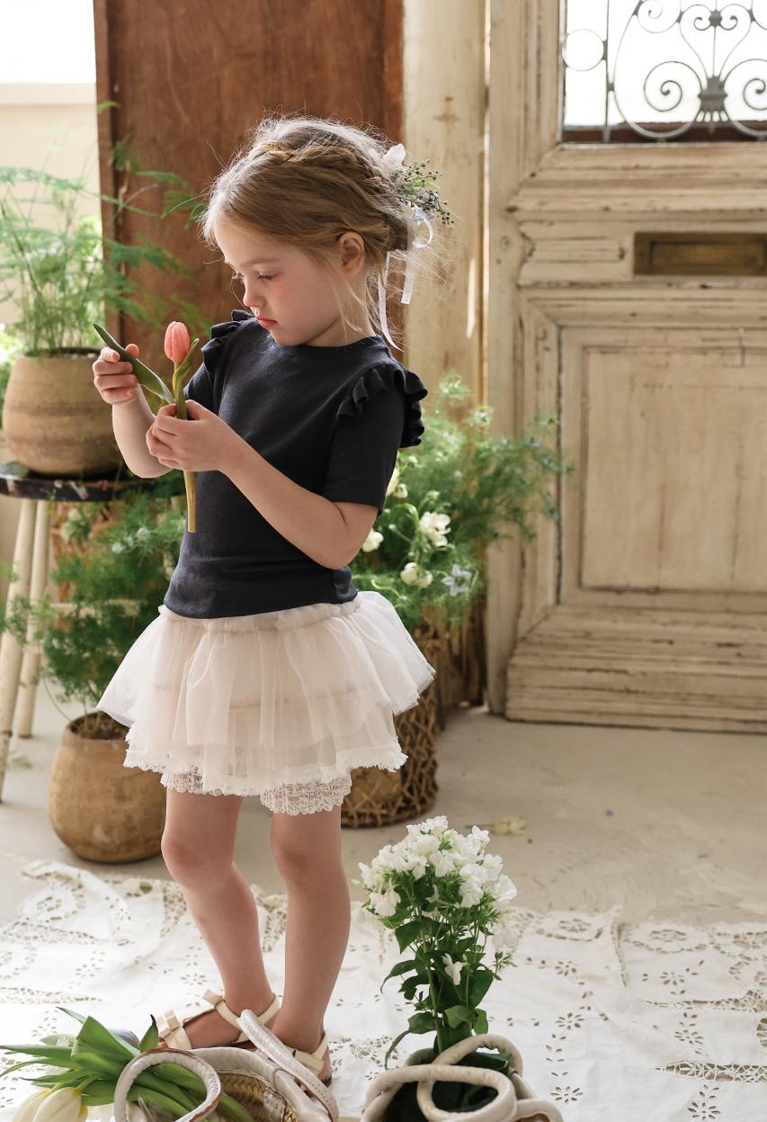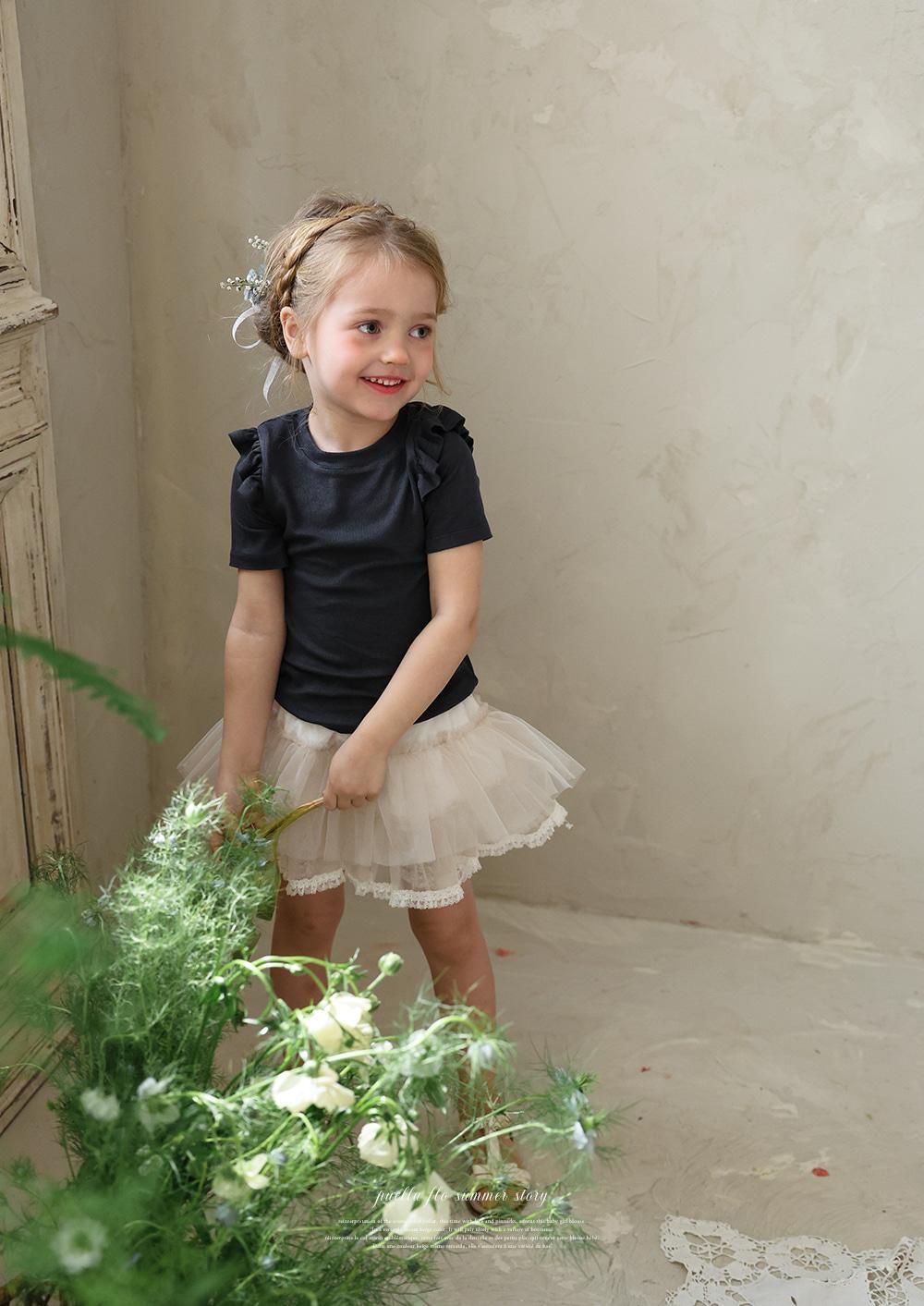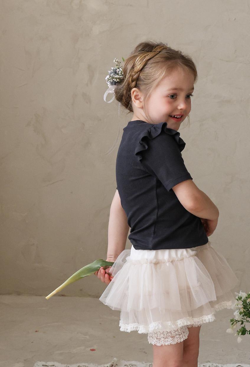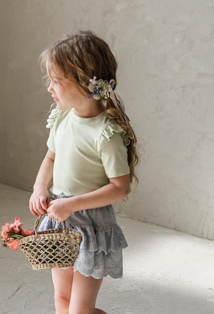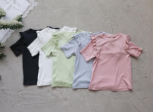 シンプルなデザインに肩のフリルを添えることでさりげない華やかさをプラス。上品でやさしい雰囲気が日常のコーディネートに自然に馴染みます。