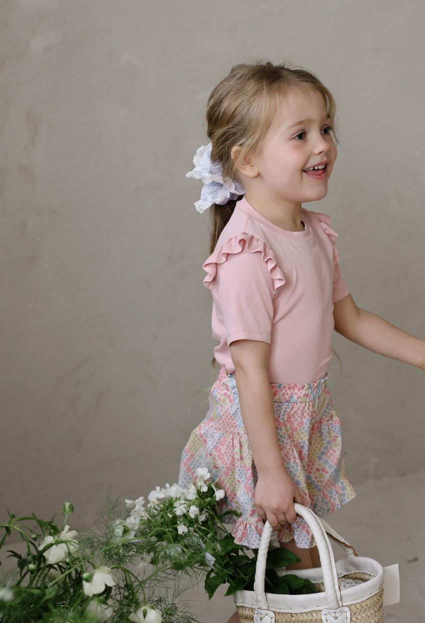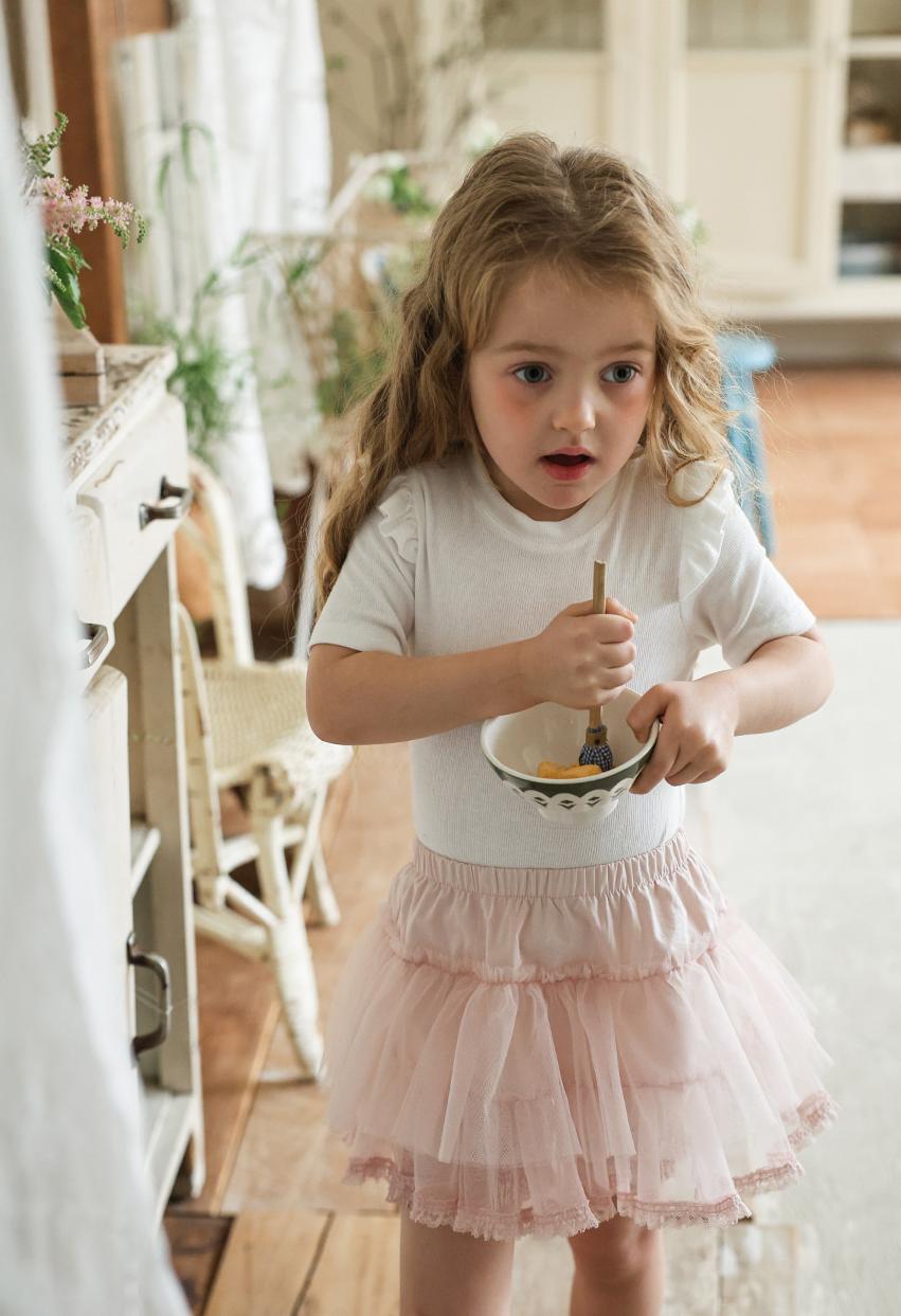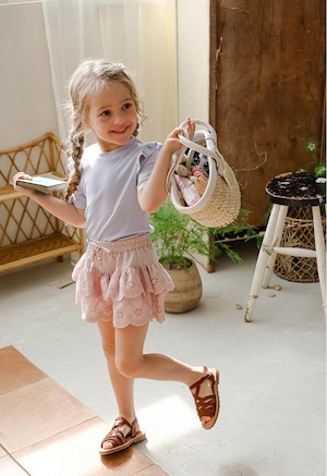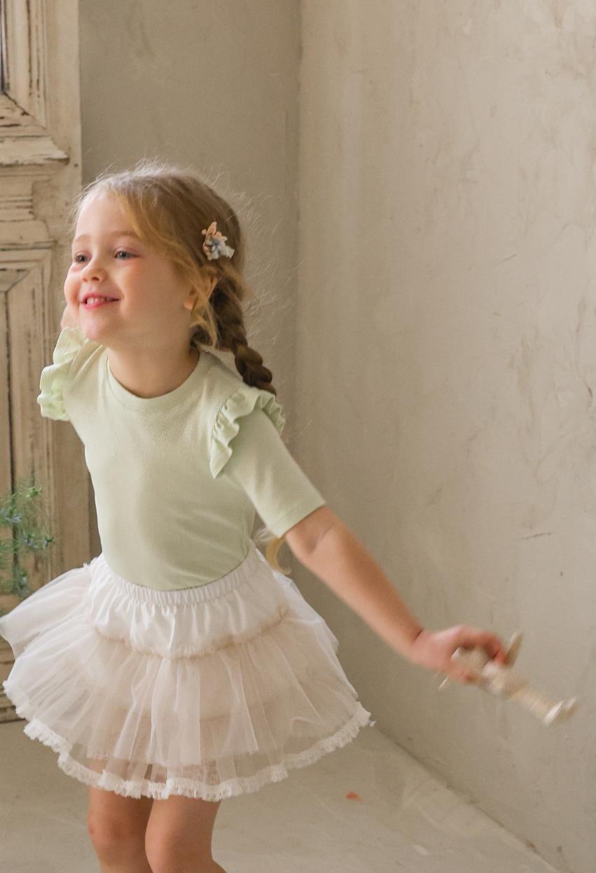 シンプルなデザインに肩のフリルを添えることでさりげない華やかさをプラス。上品でやさしい雰囲気が日常のコーディネートに自然に馴染みます。